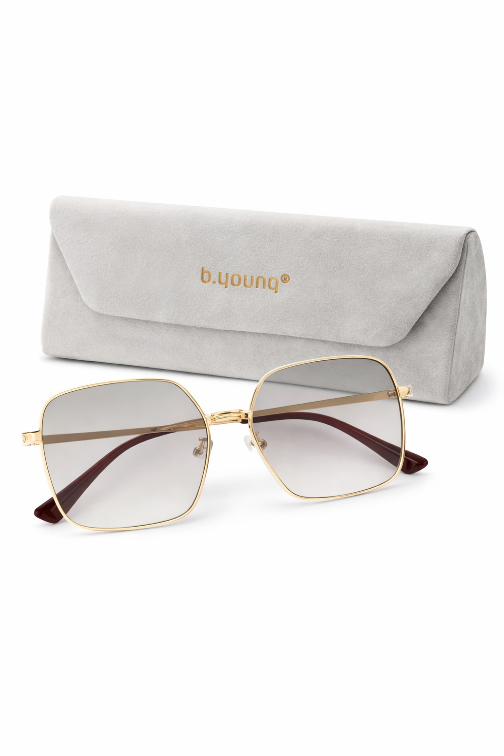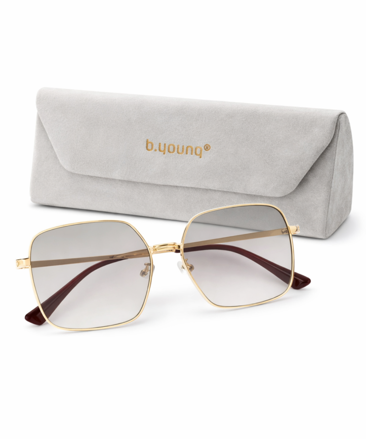 De zonnebril wordt geleverd met een stijlvol, zacht b.young brillendoosje, zodat je jouw bril veilig en beschermd kunt opbergen.