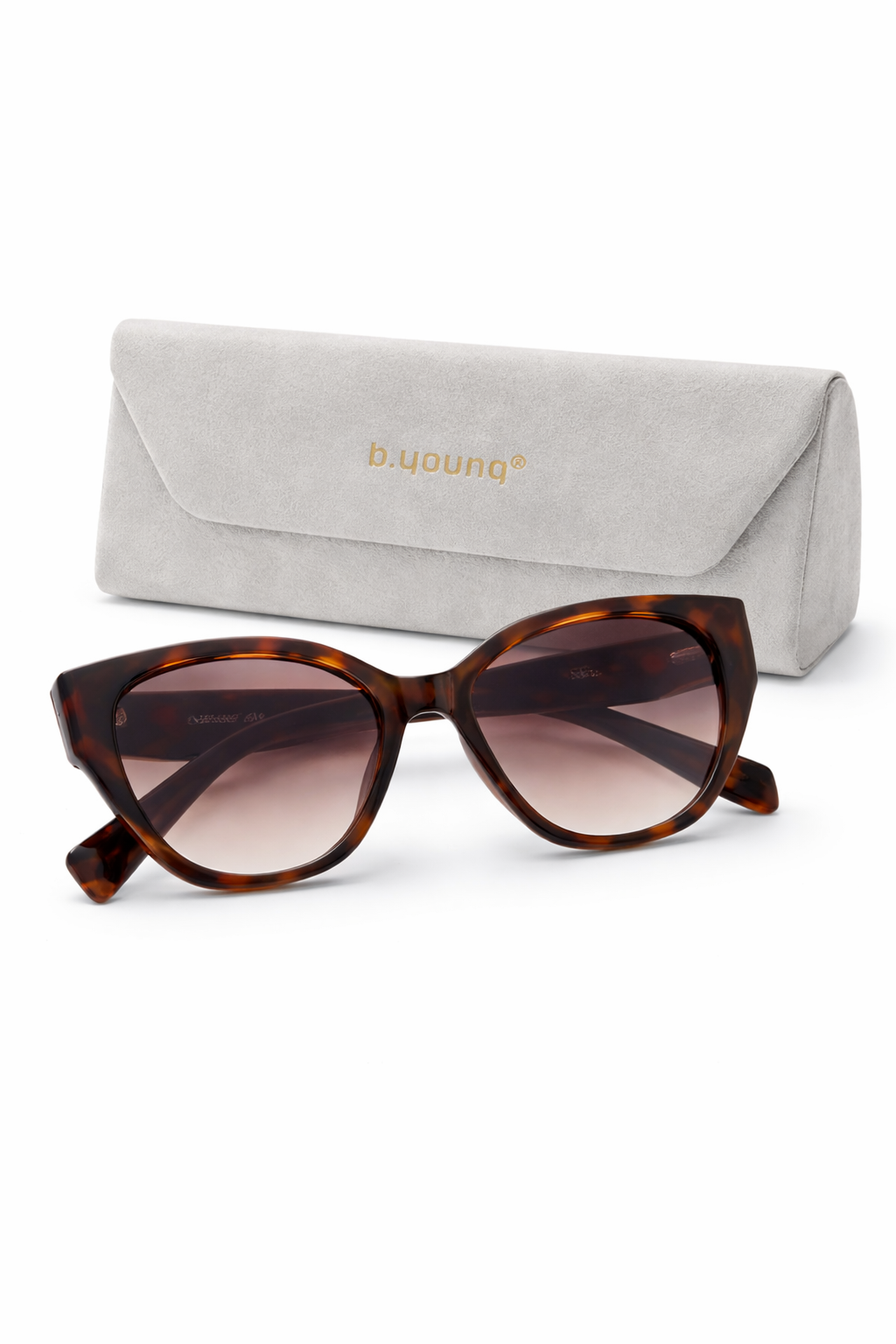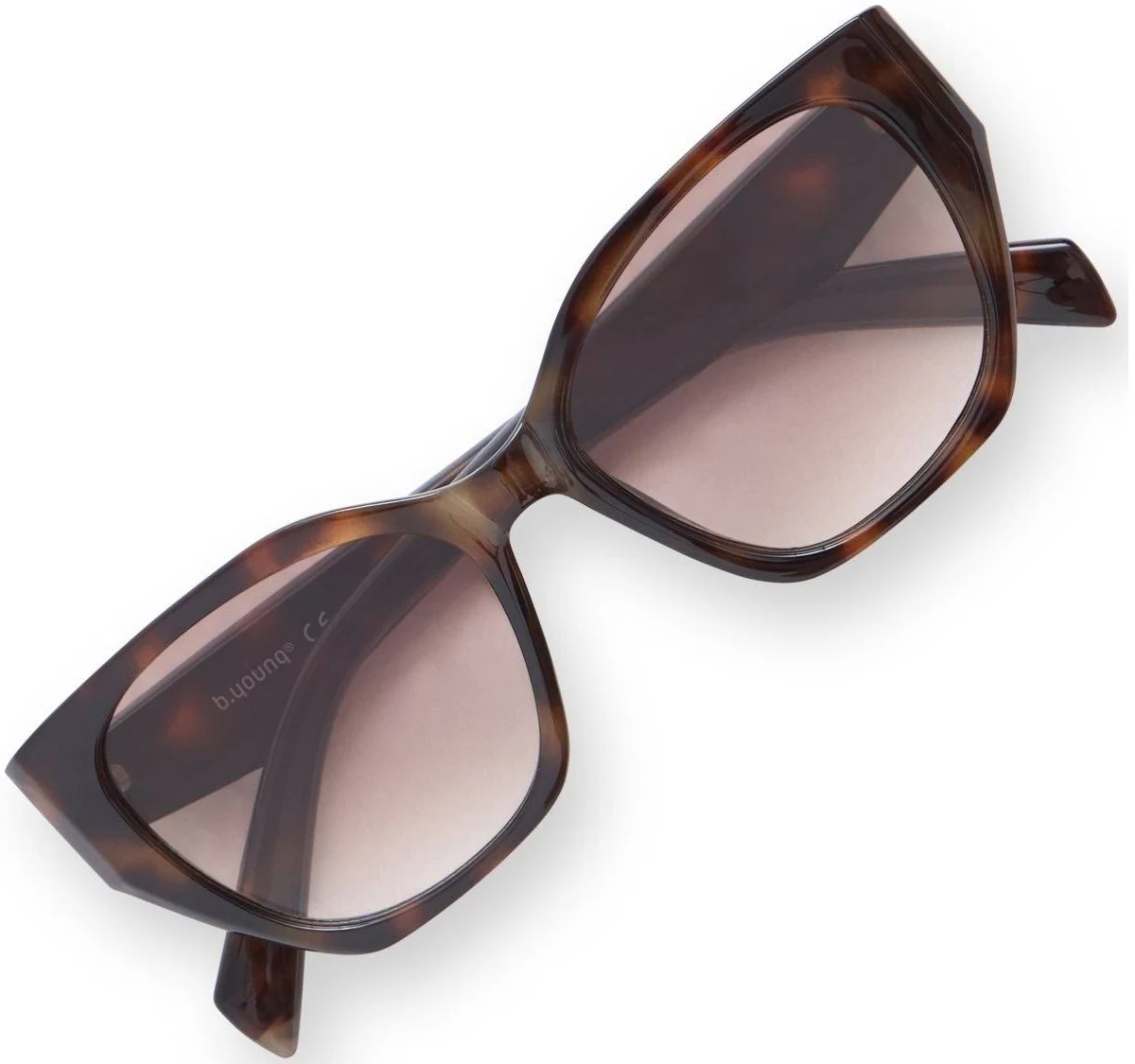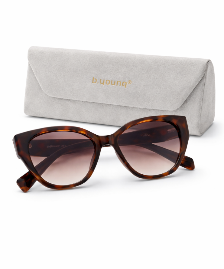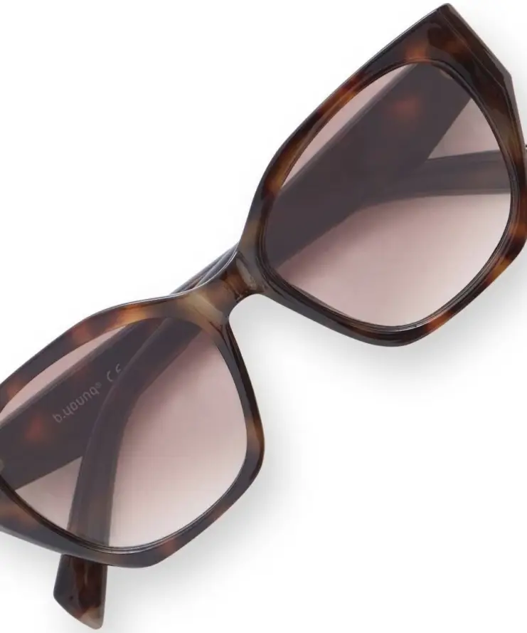 Geef je outfit een stijlvolle upgrade met deze elegante zonnebril van b.young. Het vrouwelijke montuur in warme tortoise-kleur (schildpadmotief) straalt klasse en verfijning uit. De zachte, afgeronde cat-eye vorm zorgt voor een flatterende look die bij veel gezichtsvormen past.