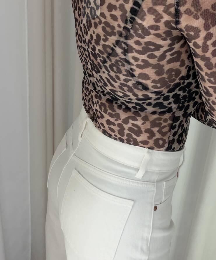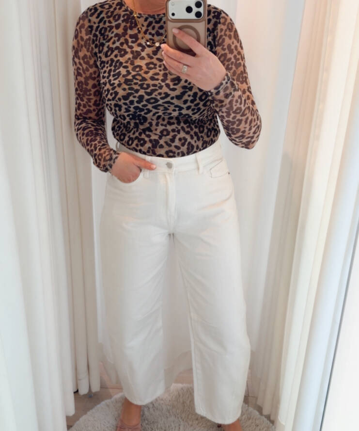 De high-waist fit accentueert de taille, terwijl de rechte, iets cropped pijpen zorgen voor een casual en trendy uitstraling. Dankzij de neutrale off white kleur is deze broek eindeloos te combineren , van basic tops tot statement items.