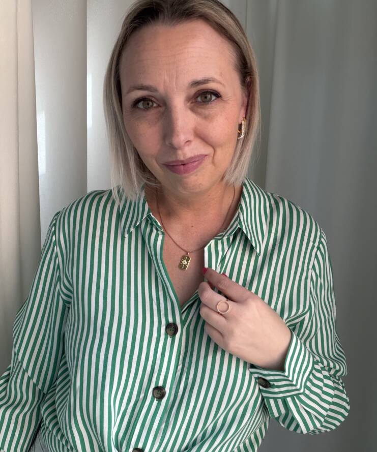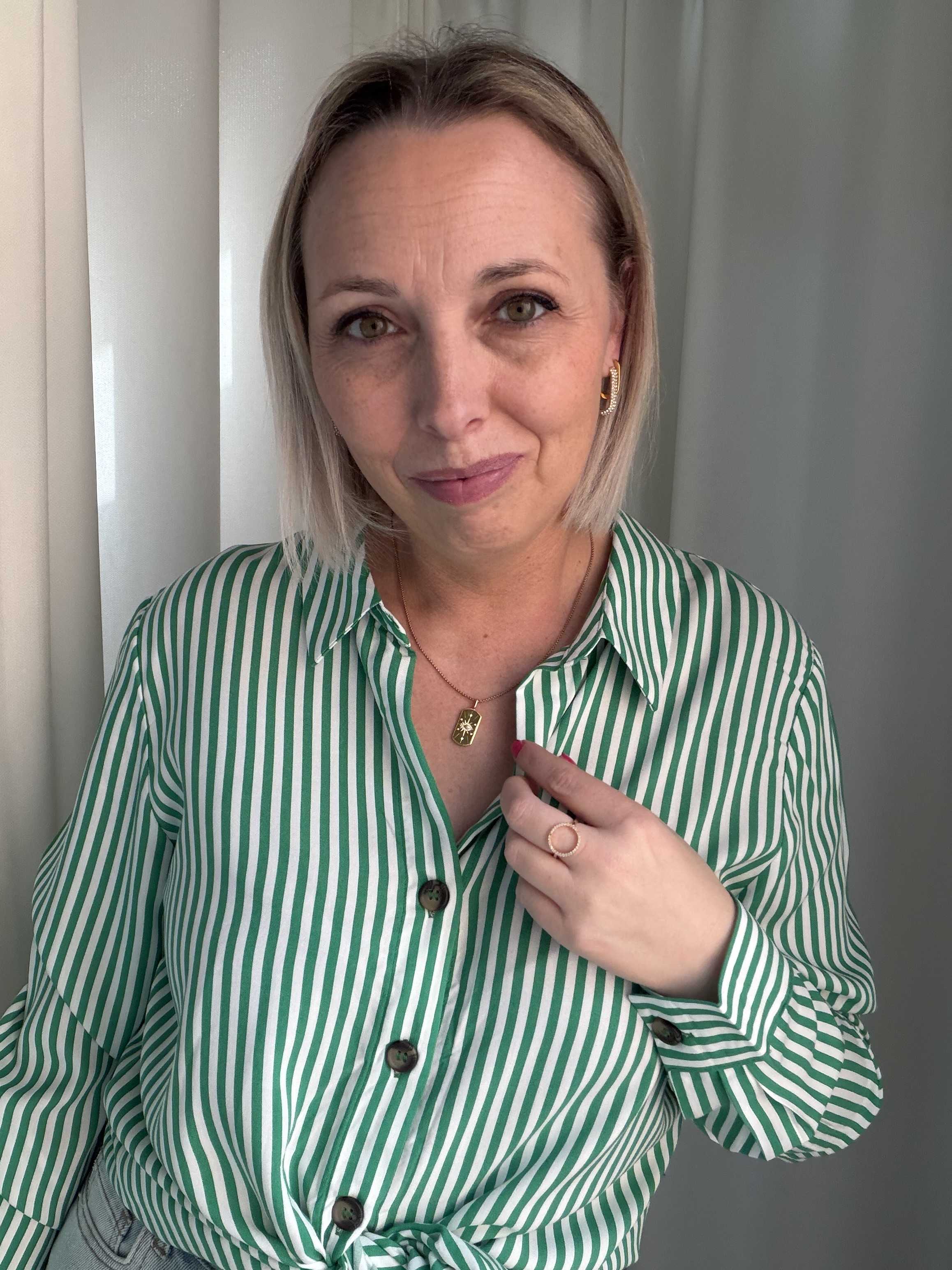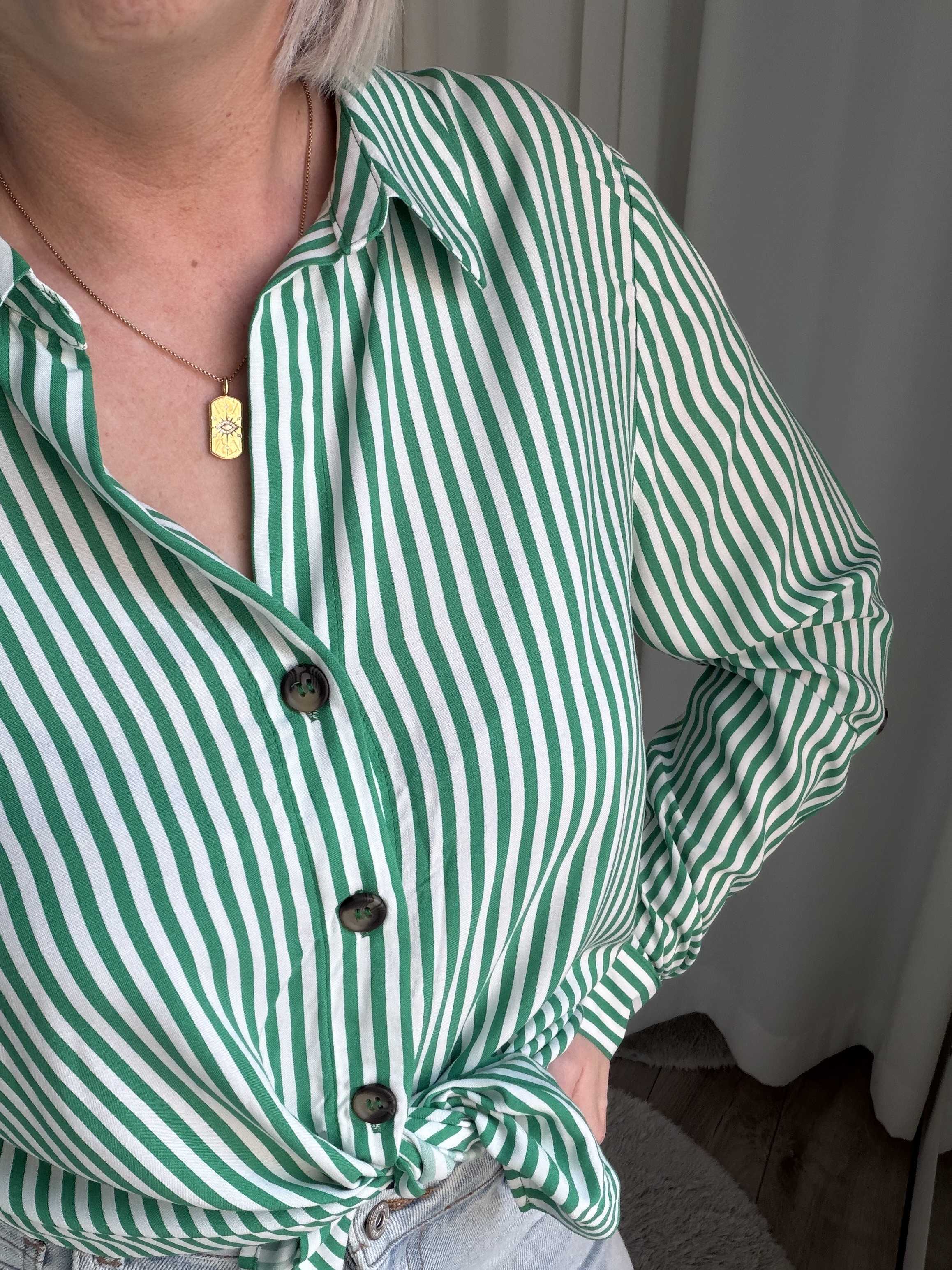 De Sienna Stripe Blouse is een tijdloze blouse met een frisse en stijlvolle uitstraling. Het klassieke groen-witte streeppatroon geeft de blouse een moderne, zomerse look die gemakkelijk te combineren is met verschillende outfits.