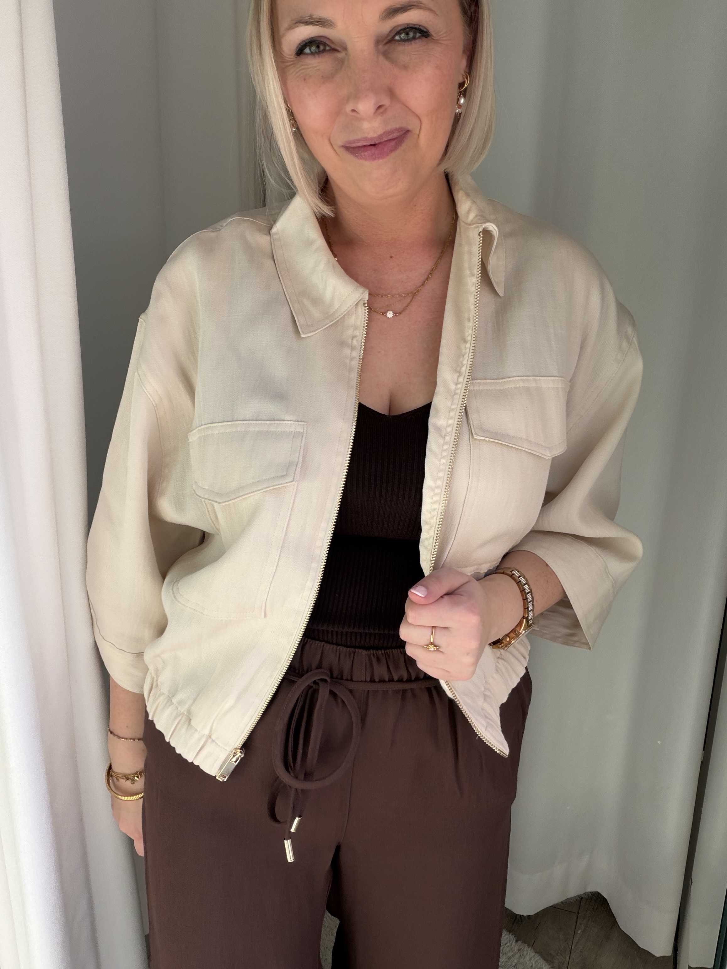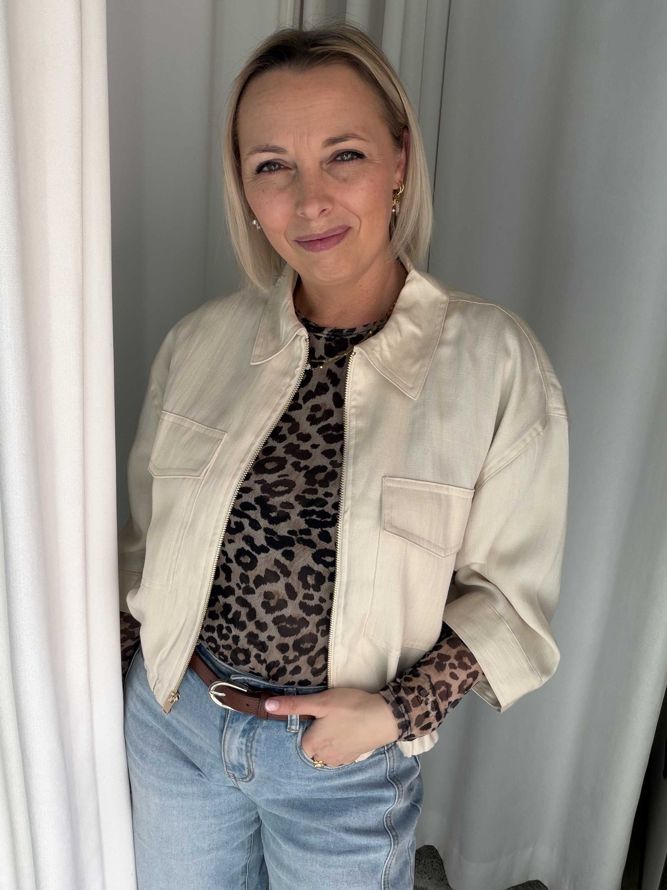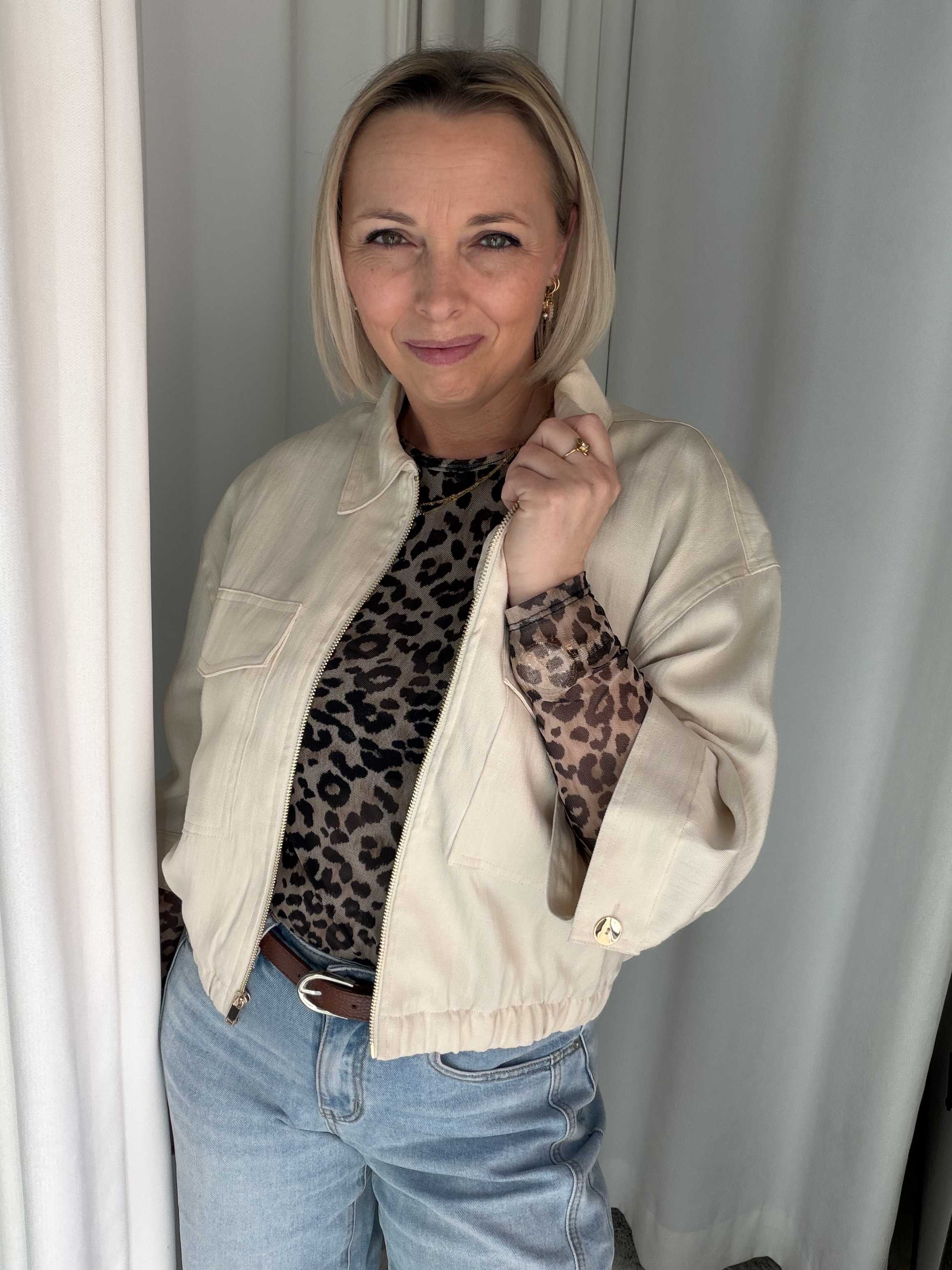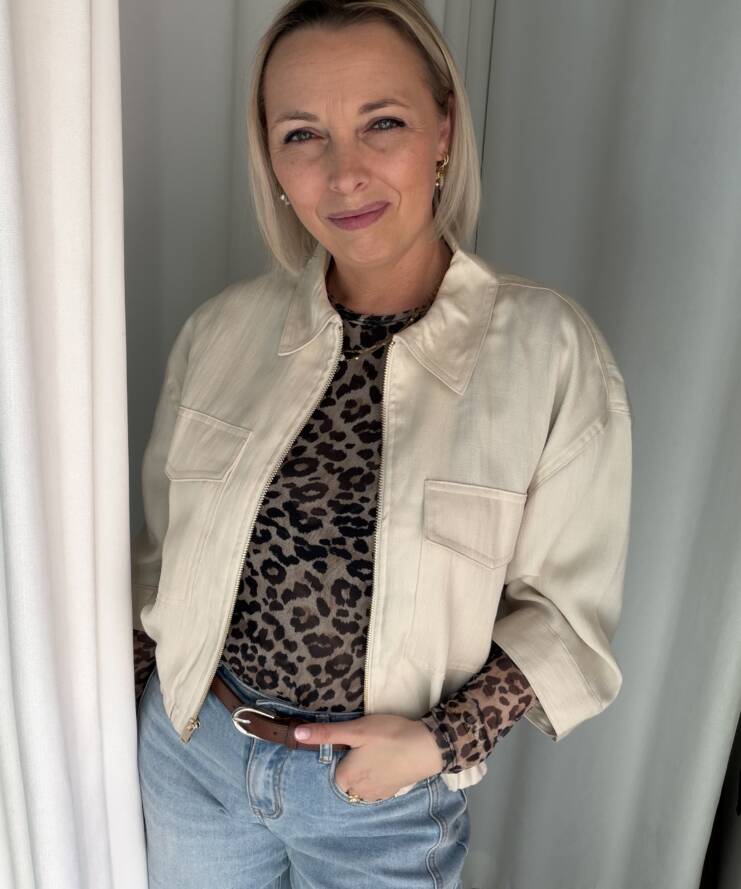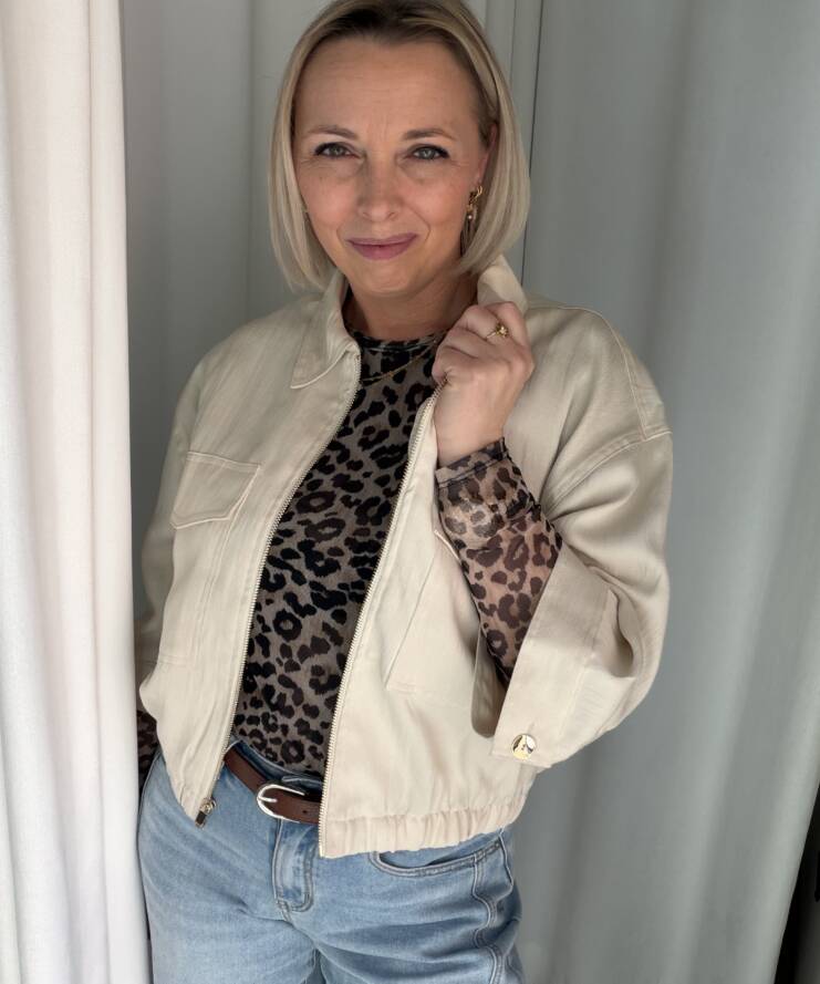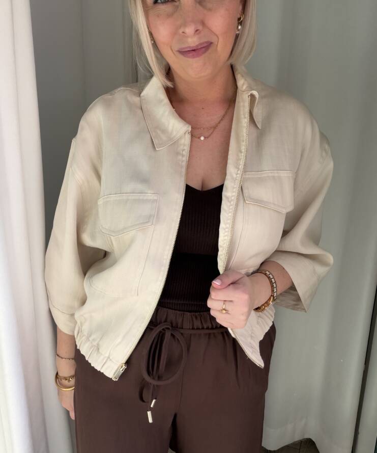 Dankzij de neutrale kleur is dit jasje eindeloos te combineren – ideaal voor zowel casual als meer geklede outfits.