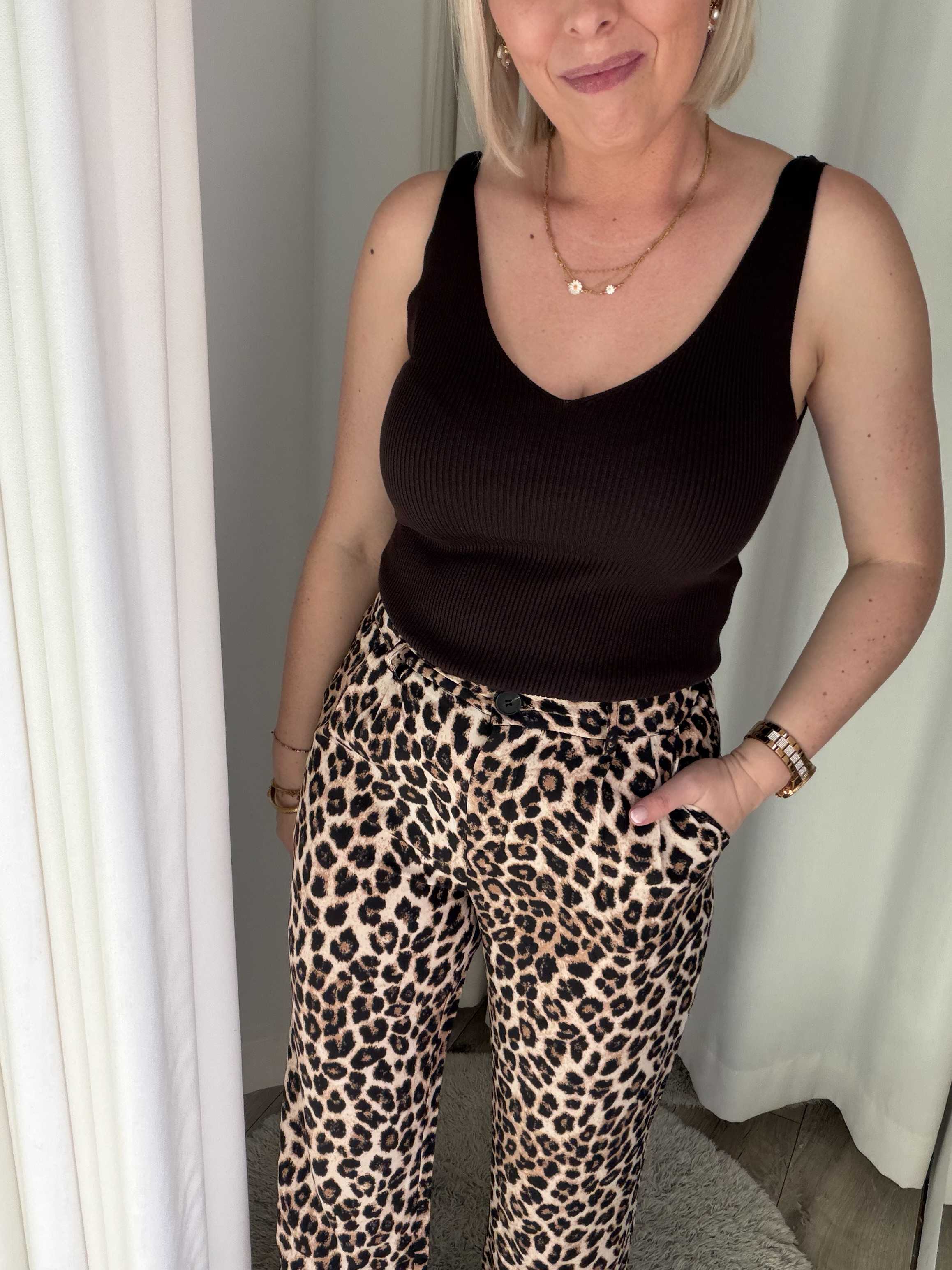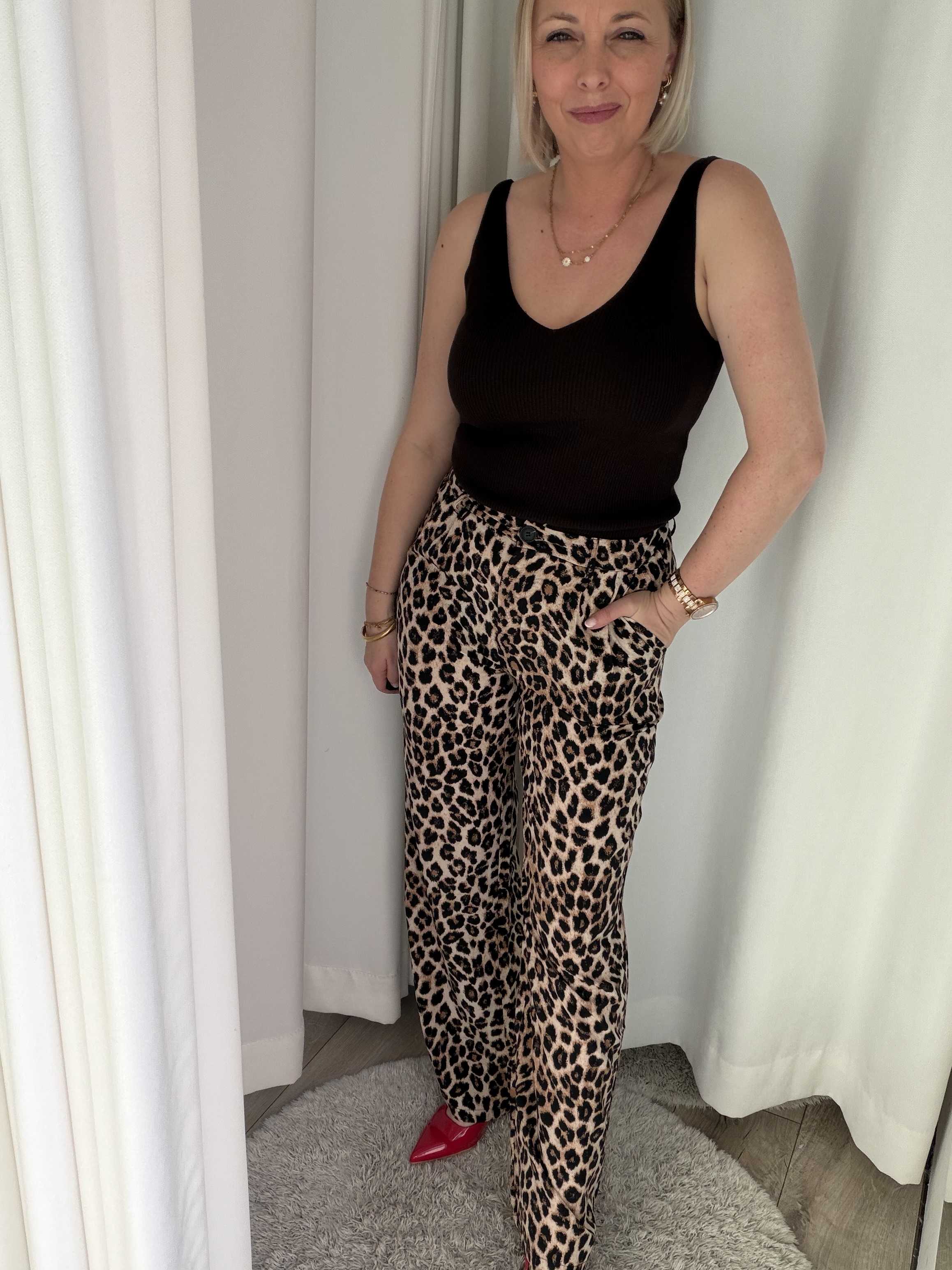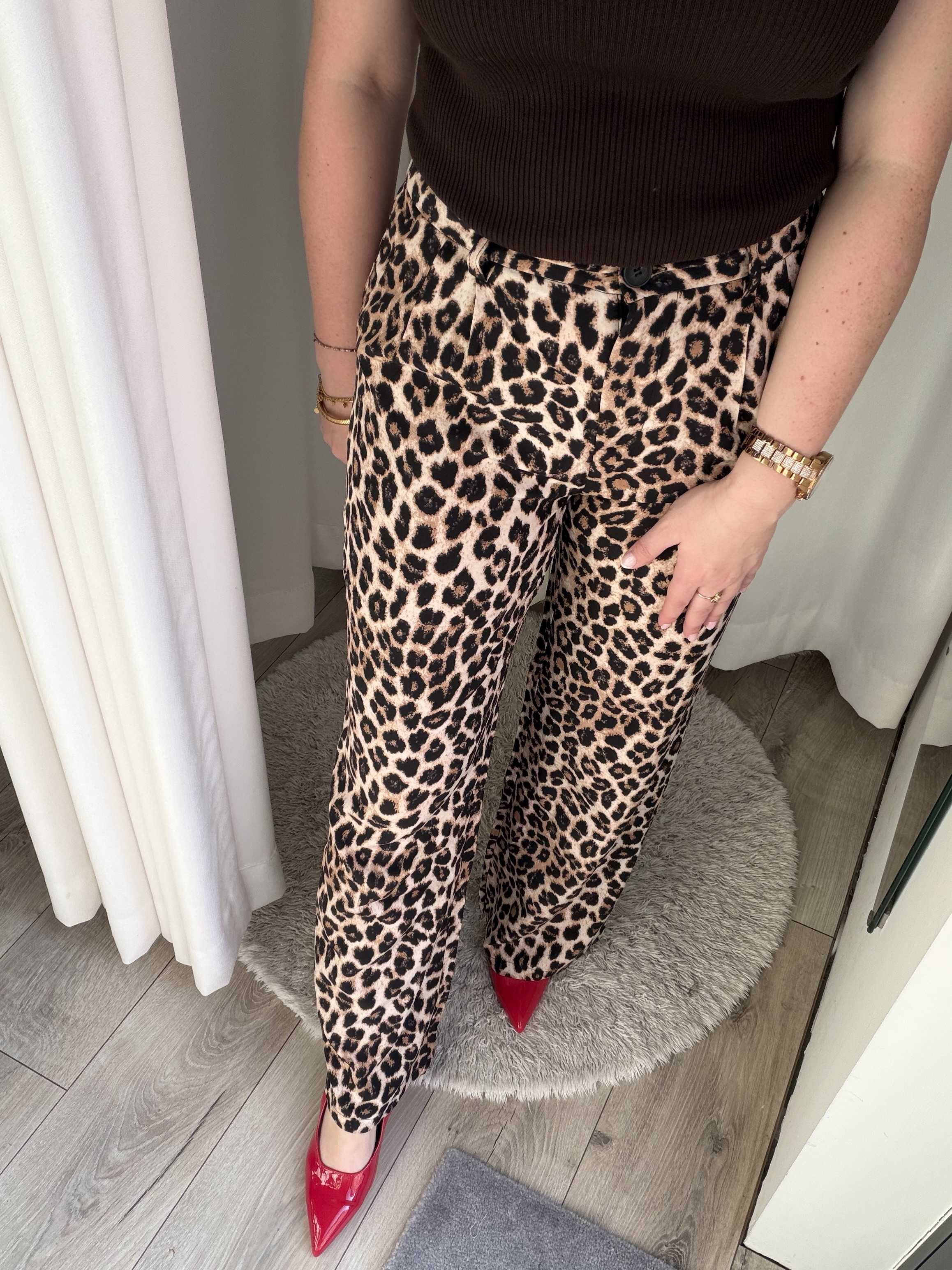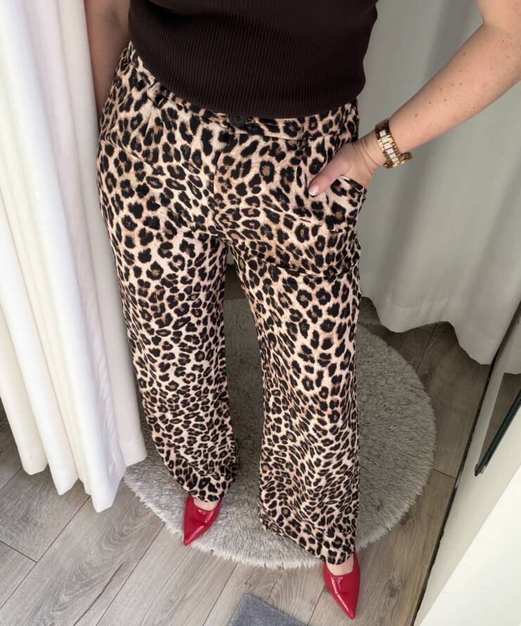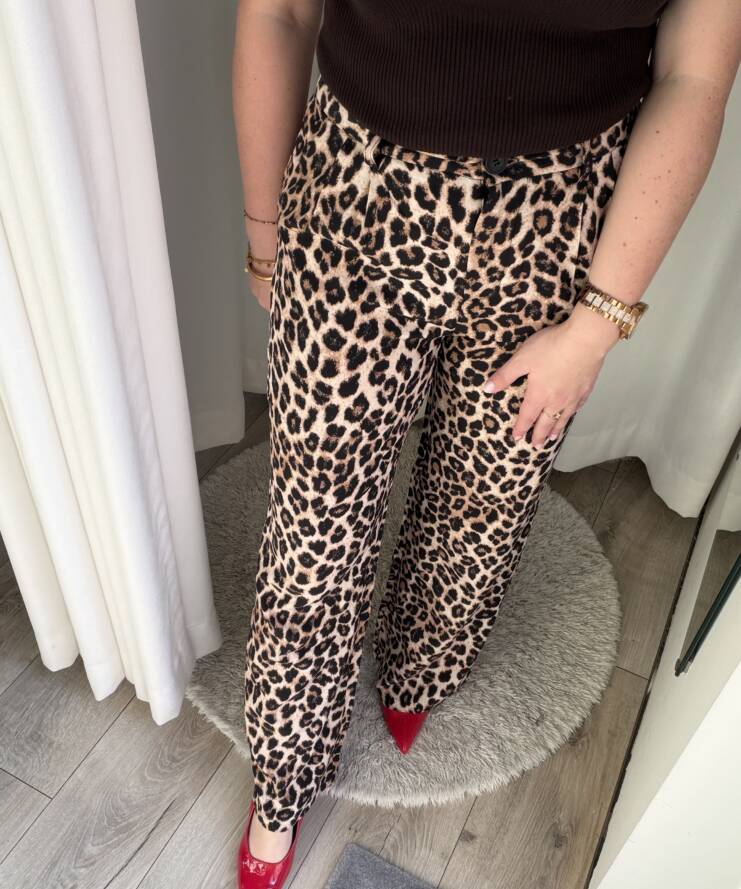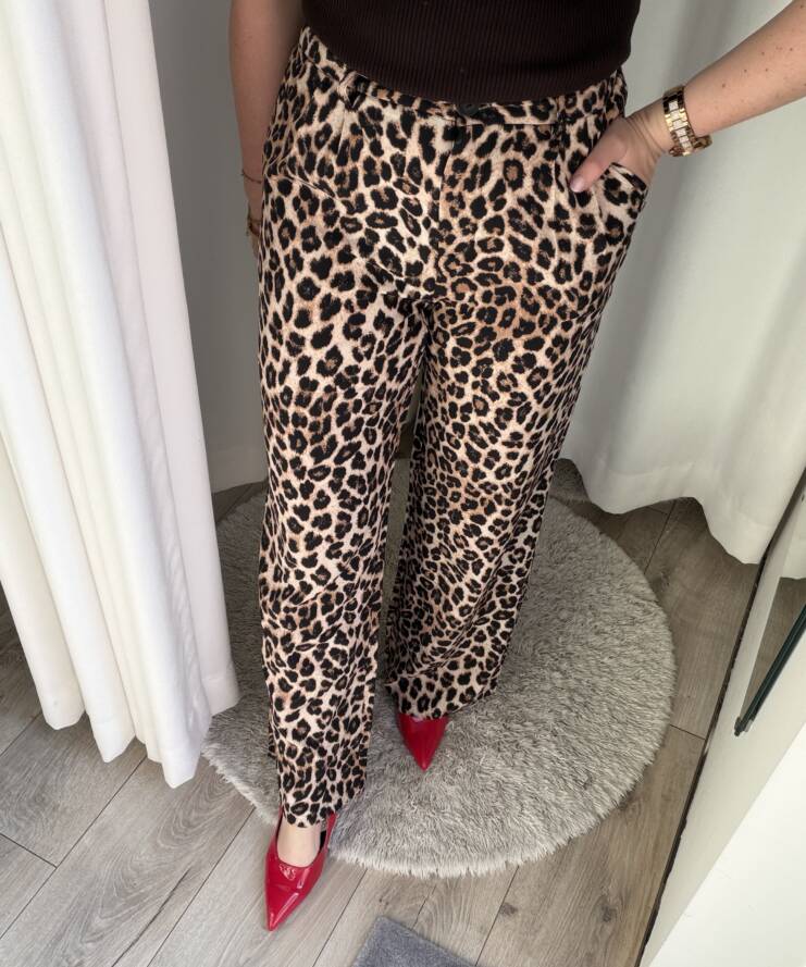 Terug naar de winkelDe Wild Chic Leopard Pants zijn dé perfecte combinatie van stijl en statement. Deze elegante broek met trendy luipaardprint geeft elke outfit direct een modieuze en krachtige uitstraling.