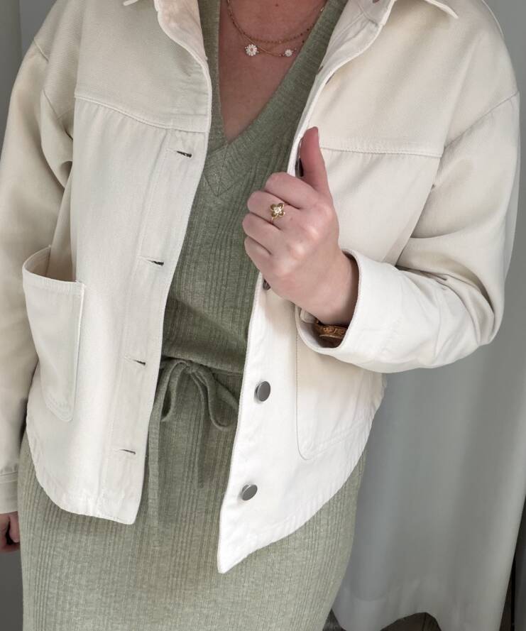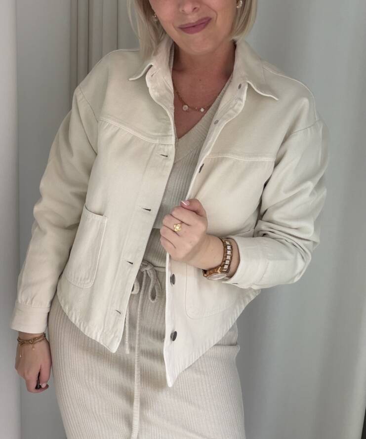 Deze stijlvolle jas in ecru is een echte must-have voor een casual en moderne look. Het ontwerp is geïnspireerd op de populaire utility trend en combineert functionaliteit met een tijdloze uitstraling.
