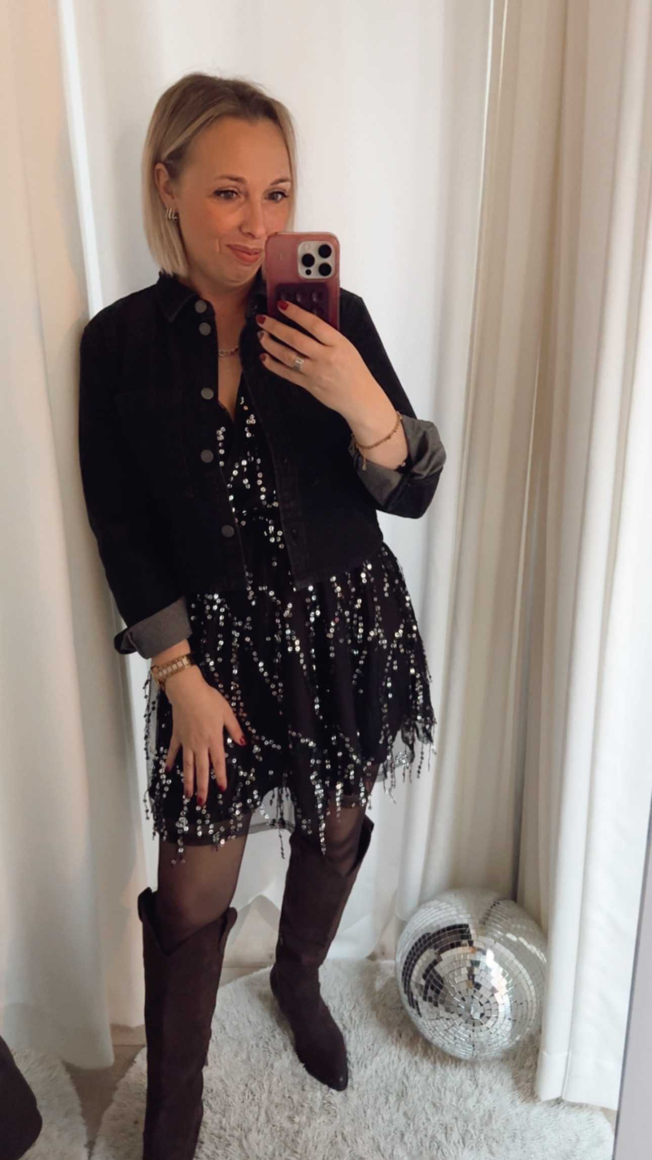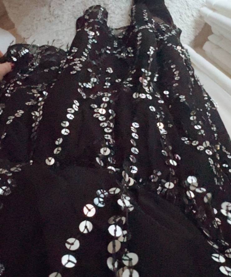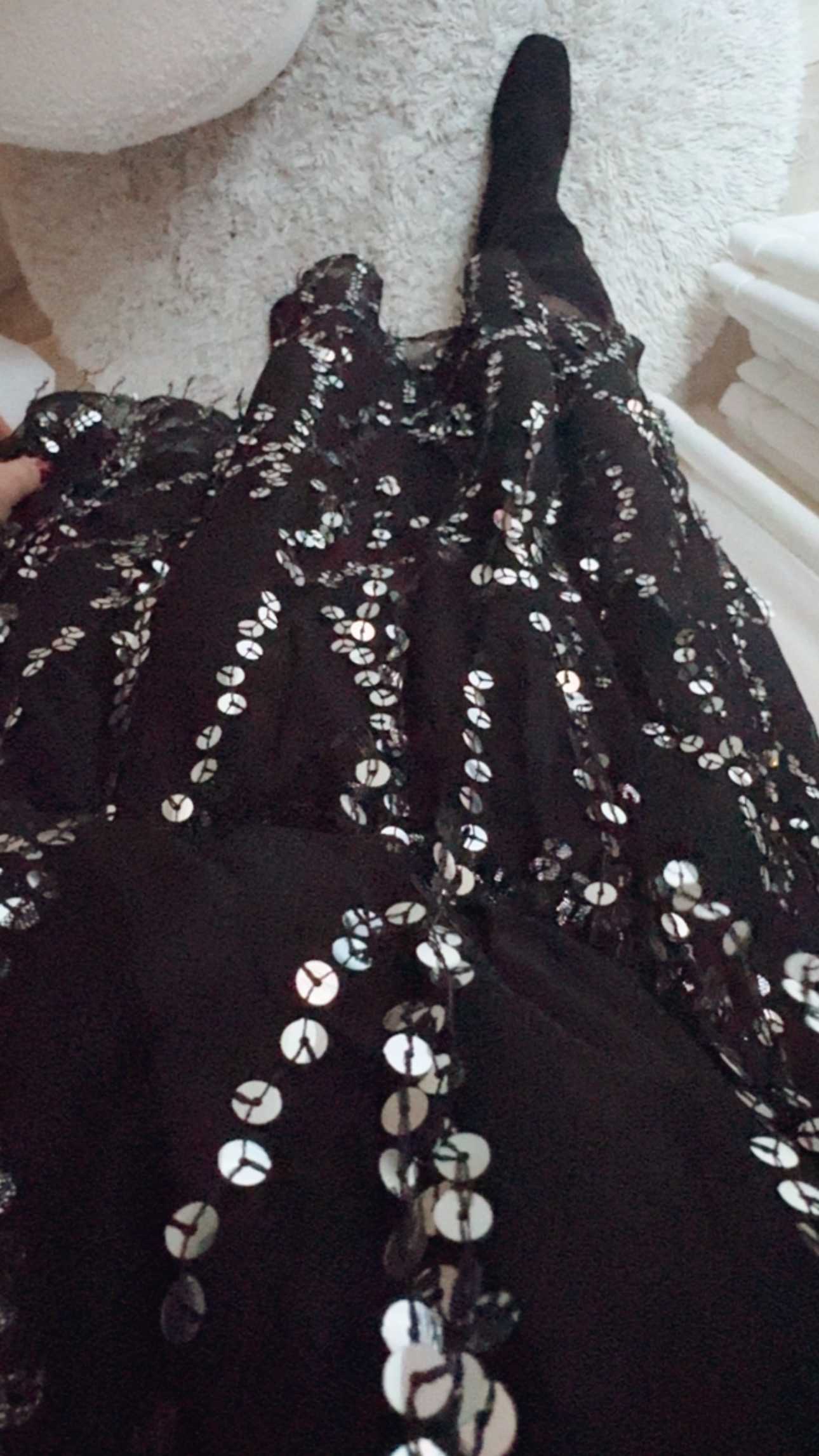 Dit jurkje is ideaal voor de feestdagen, maar ook perfect doordraagbaar voor andere gelegenheden. Het heeft een rekkerband in de taille voor een flatterende pasvorm en een subtiel drukknopje om het jurkje op zijn plaats te houden. Het materiaal bevat wat stretch en voelt comfortabel aan . Behoudt mooi zijn vorm. Het jurkje is afgewerkt met zachte, elegante details en de mooiste pailletten