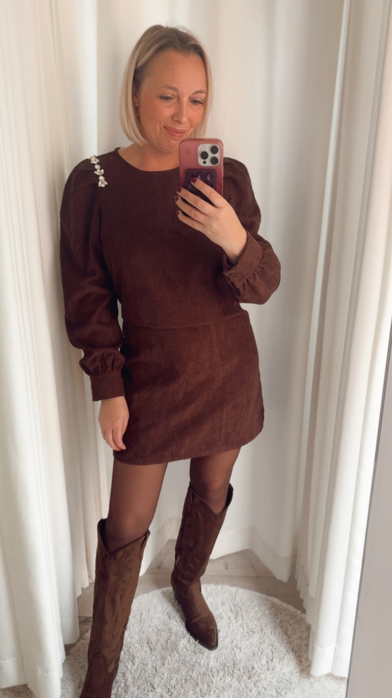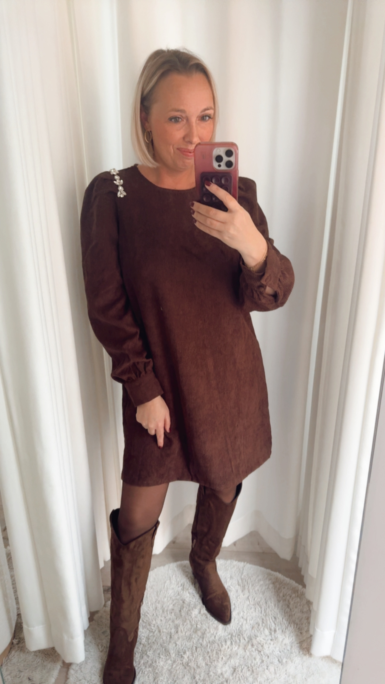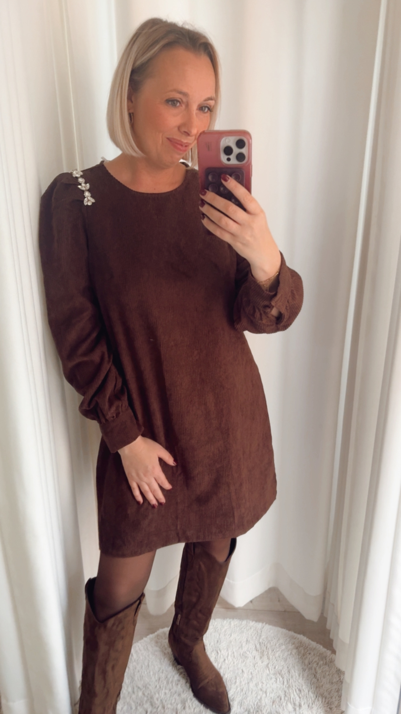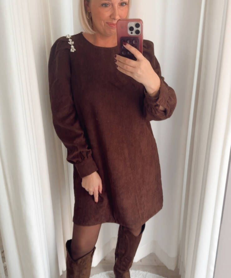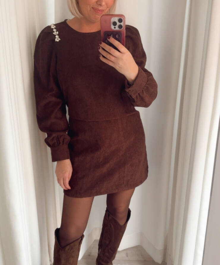 Onze jurk Célestine is DE jurk om de feestdagen mee door te brengen. Deze korte velvet jurk is tijdloos en straalt van eenvoud door de fluwelen stof. De ronde halslijn voegt een vleugje verfijning toe, terwijl de diamanten knoopsluiting op de schouder zowel praktisch als elegant is.