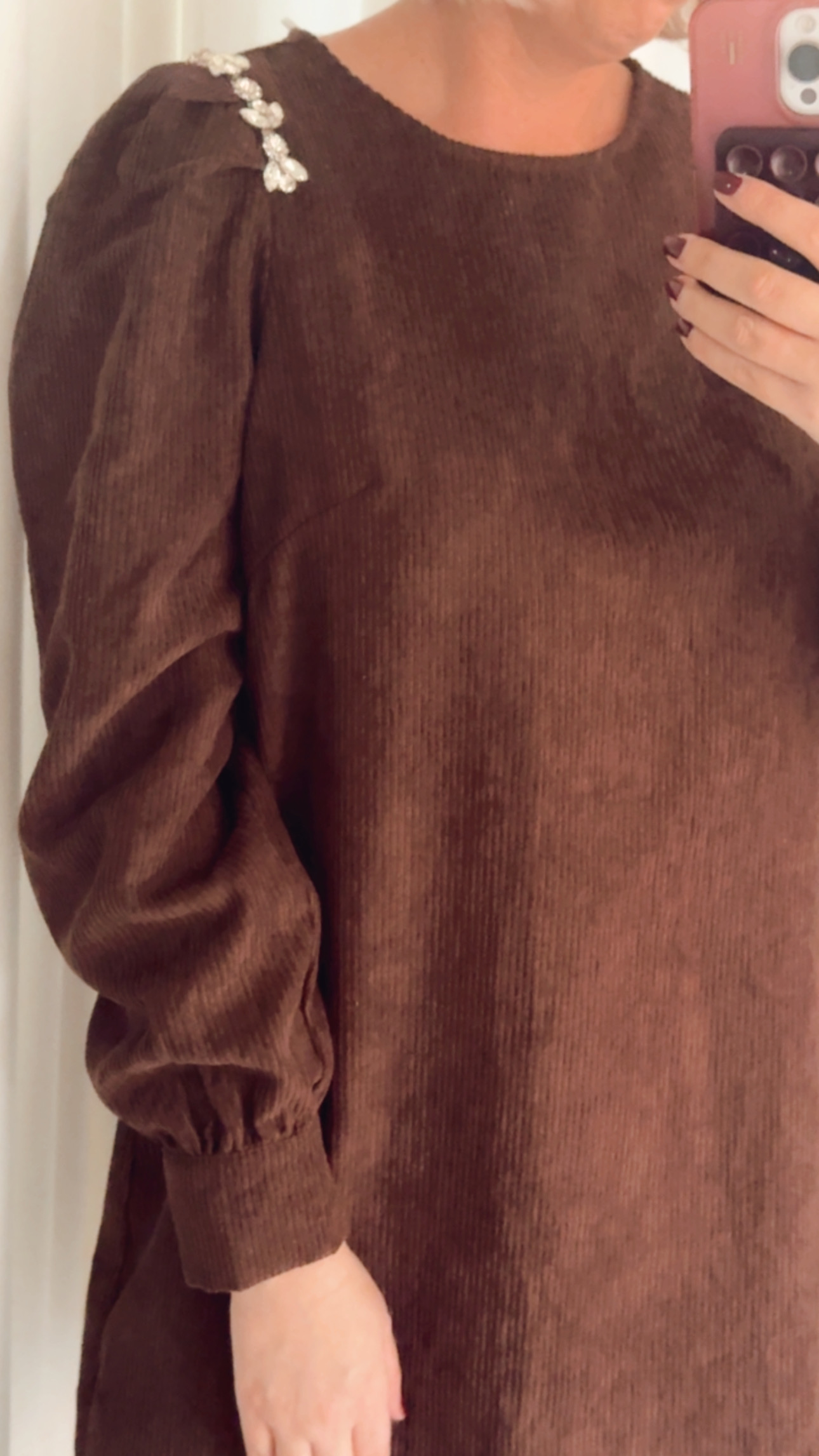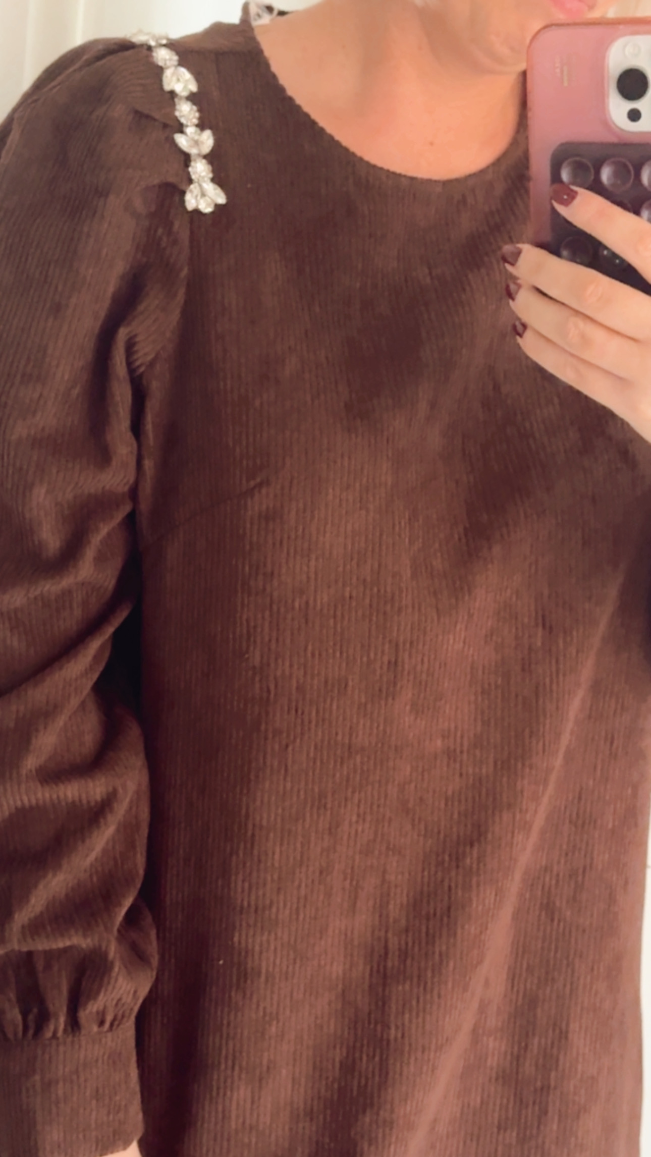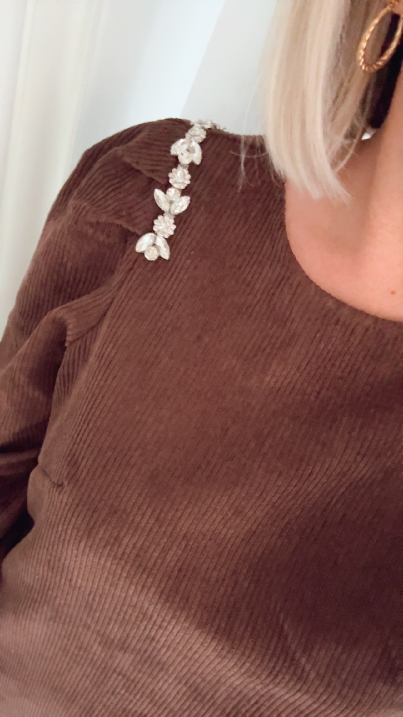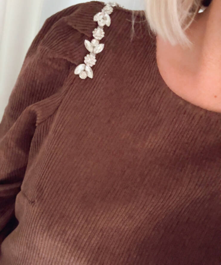 Célestine is perfect voor casual dagen en valt op door haar comfort en veelzijdigheid. Door de diamanten details op de schouders kan je ze zo dragen om de feestdagen te vieren in stijl en comfort.
