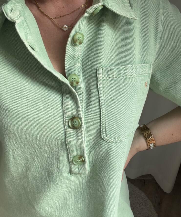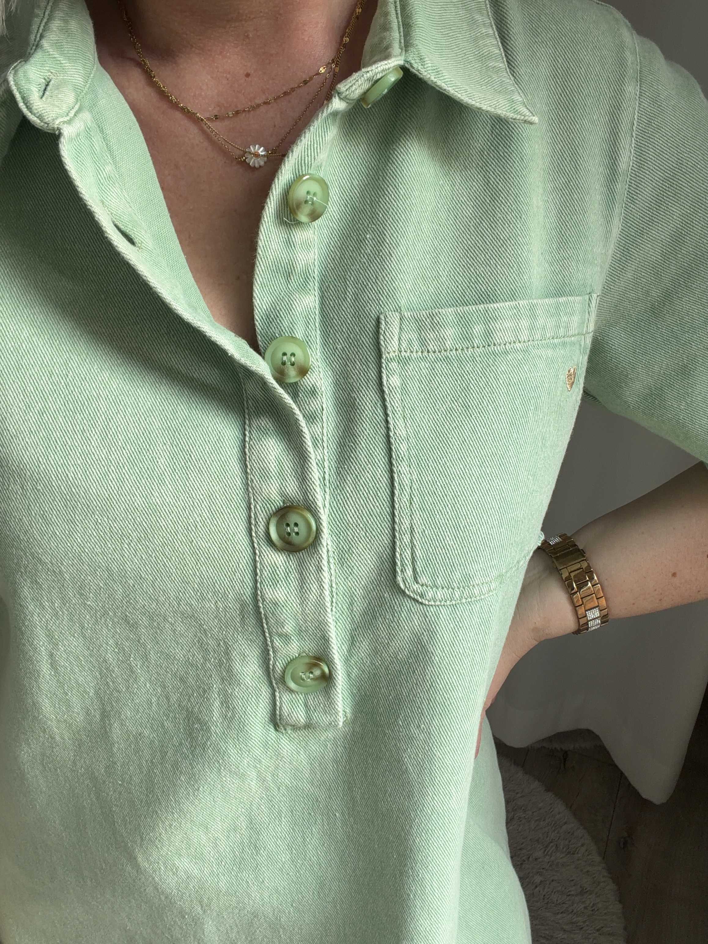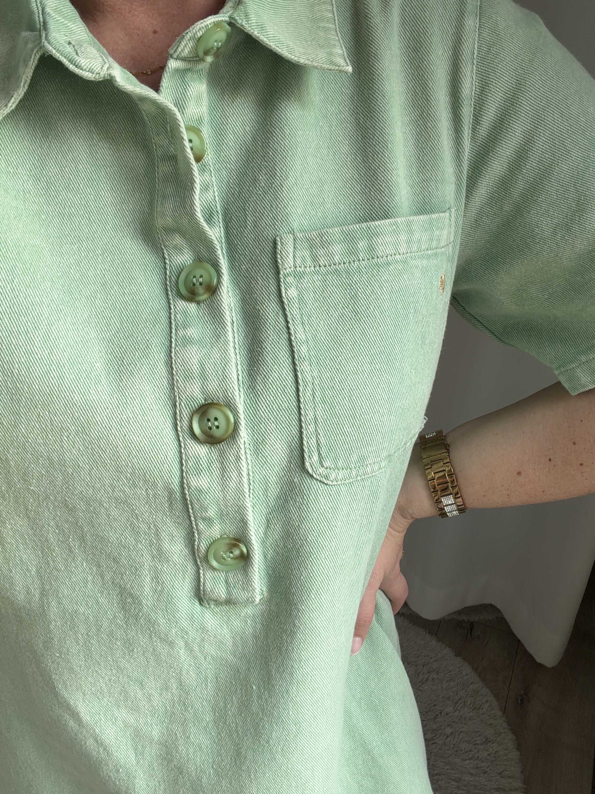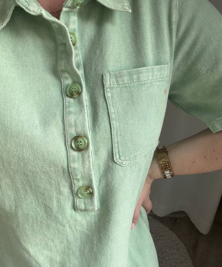 De Sage Denim Green Jurk is een stijlvolle en comfortabele denim jurk in een zachte groene tint. De jurk heeft een casual, maar vrouwelijke uitstraling en is perfect voor zowel een relaxte dag als een trendy outfit.