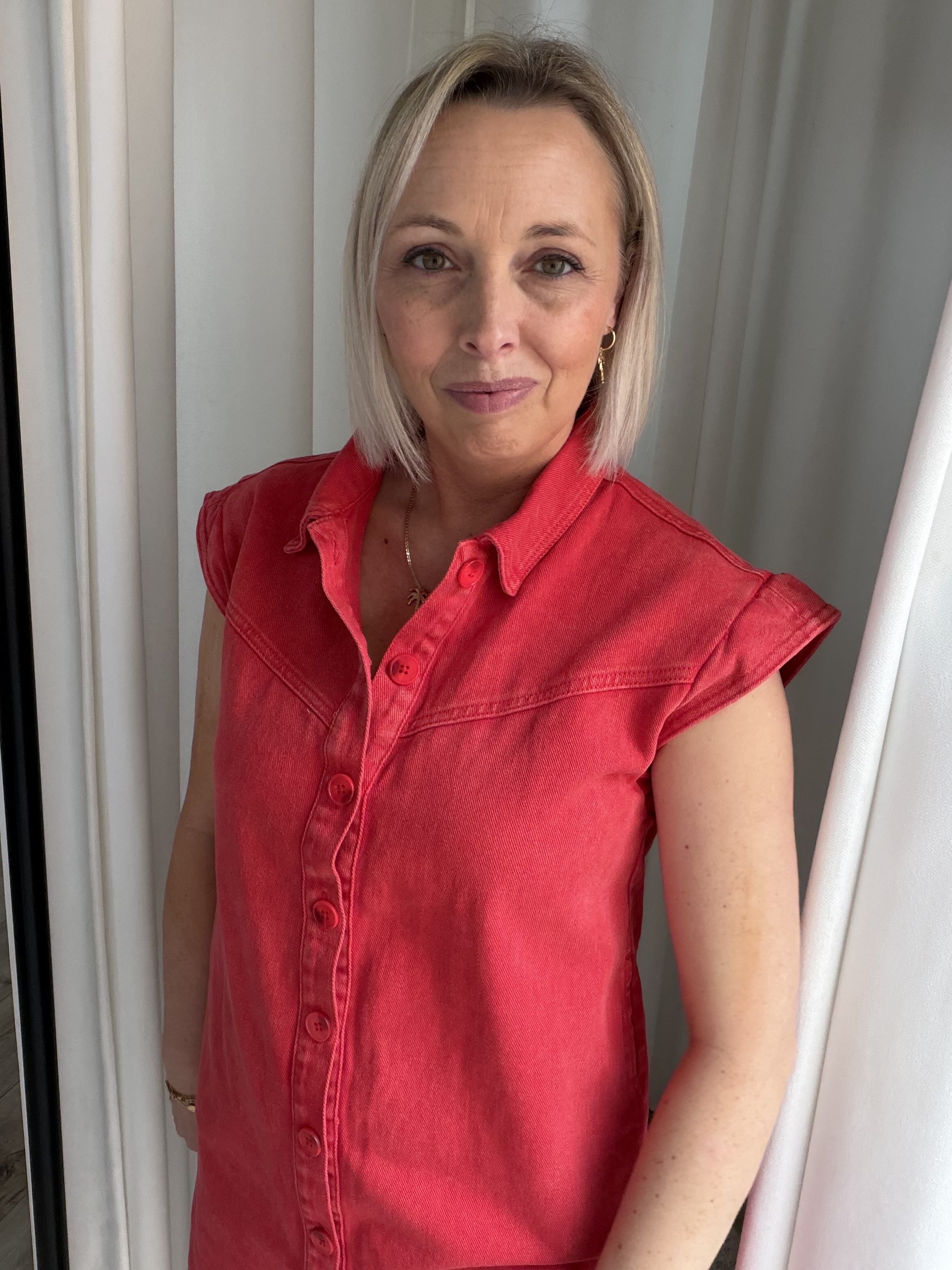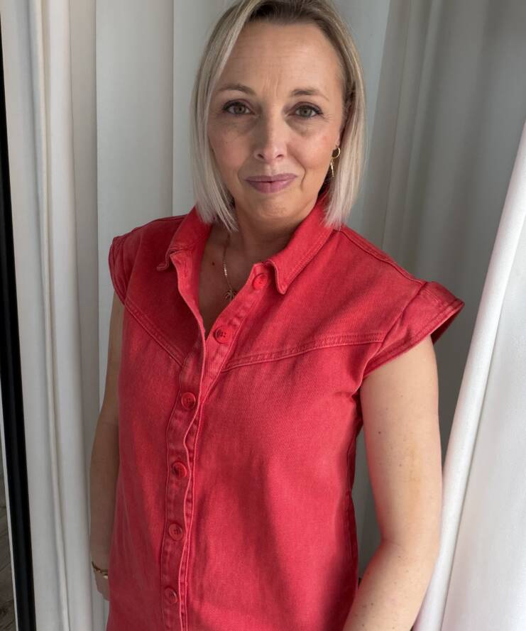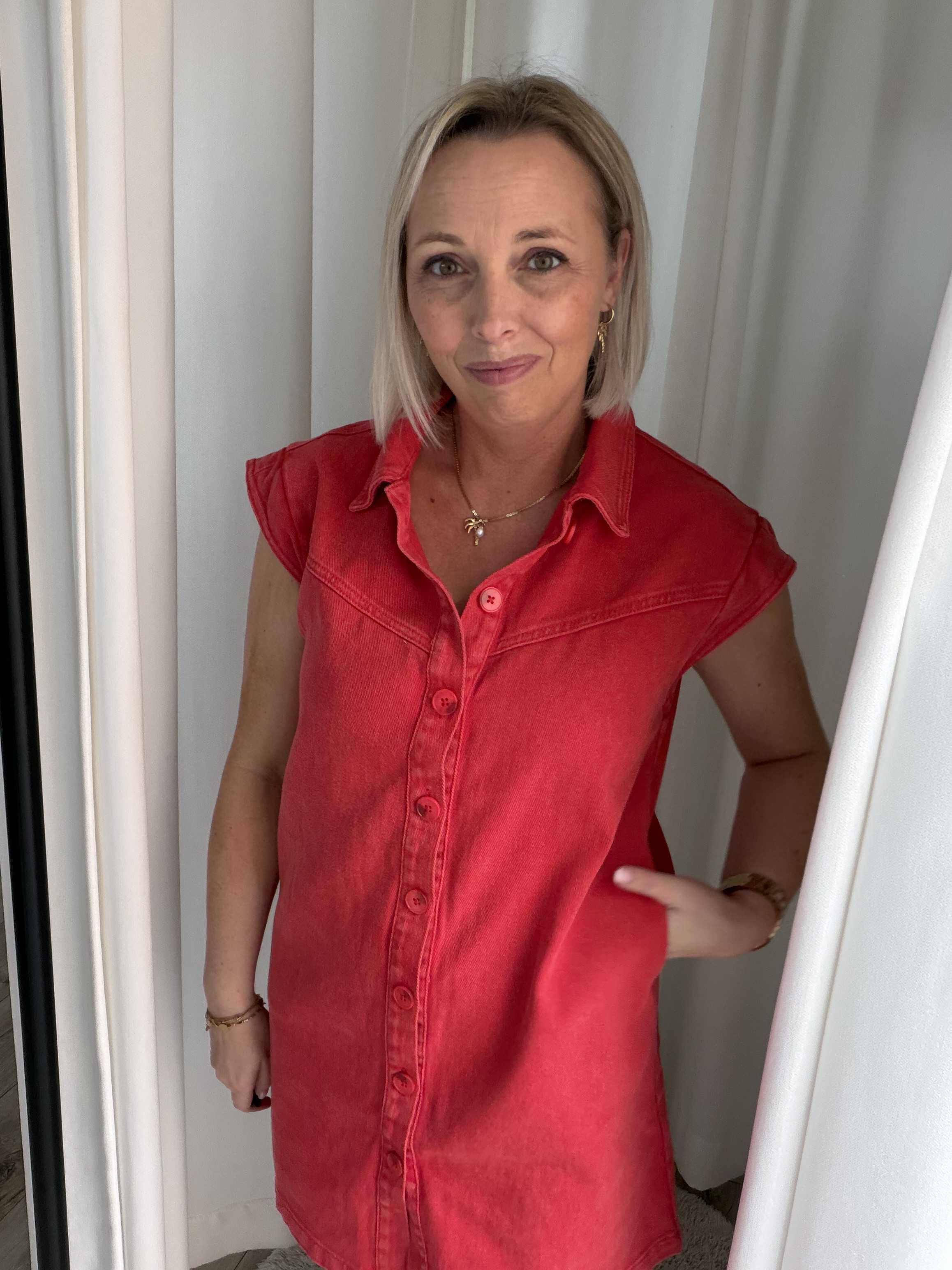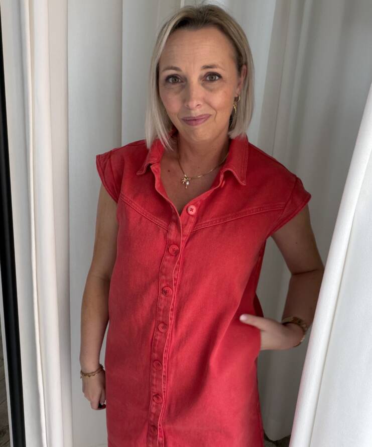 Deze trendy denim mini jurk is een echte eyecatcher voor je garderobe. Uitgevoerd in een warme rode wassing geeft deze jurk een speelse, maar toch stoere uitstraling. Het model heeft een rechte, licht losvallende pasvorm die comfortabel draagt en mooi om het lichaam valt.