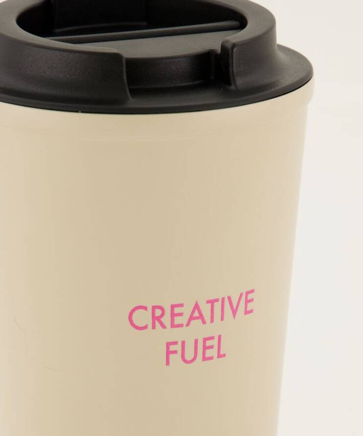 Need some creative fuel on the way? Deze praktische en stijlvolle beker is perfect om je warme drankje heerlijk heet te houden onderweg naar werk of op school. De beker is gemaakt van sterk materiaal en heeft een stevige sluiting waardoor hij absoluut niet lekt. De beige kleur in combinatie met de roze letters maakt ‘m ook nog eens een toevoeging aan je look. Go get it!