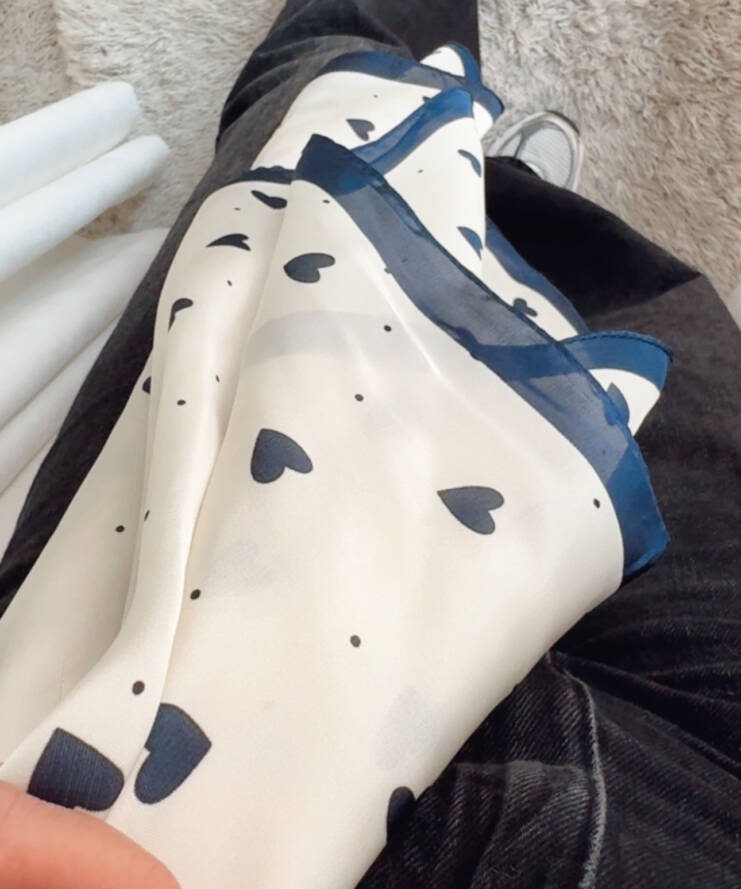 Een vleugje ecru met kleine hartjes, een speels statement om elke dag te dragen. Om je nek, in je haar of aan een tas, het fleurt je outfit op en voegt die moeiteloze chic toe waar we zo van houden.