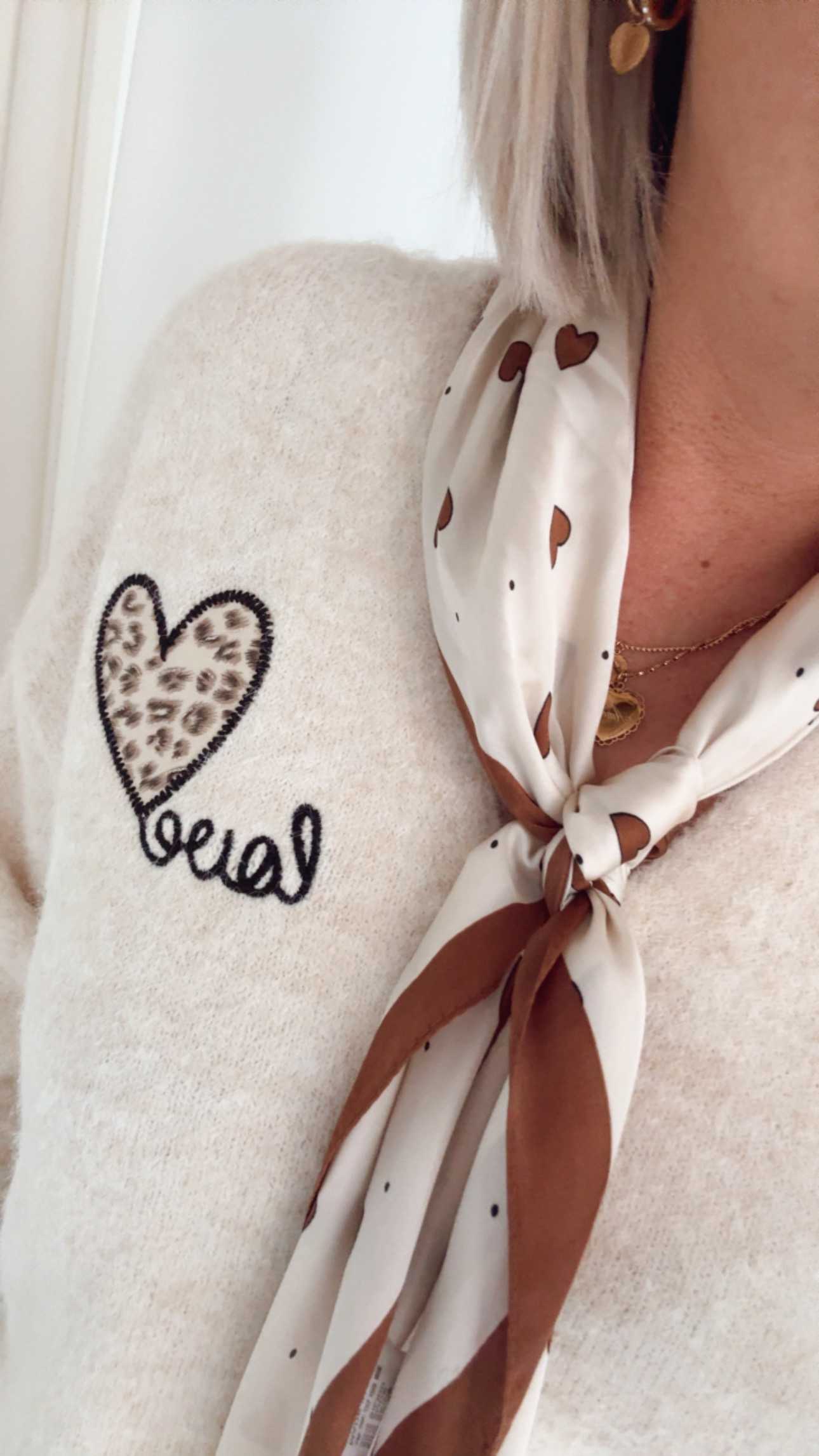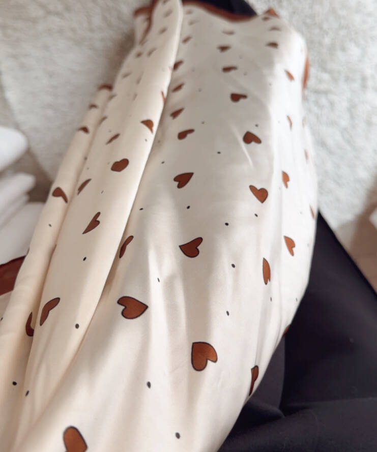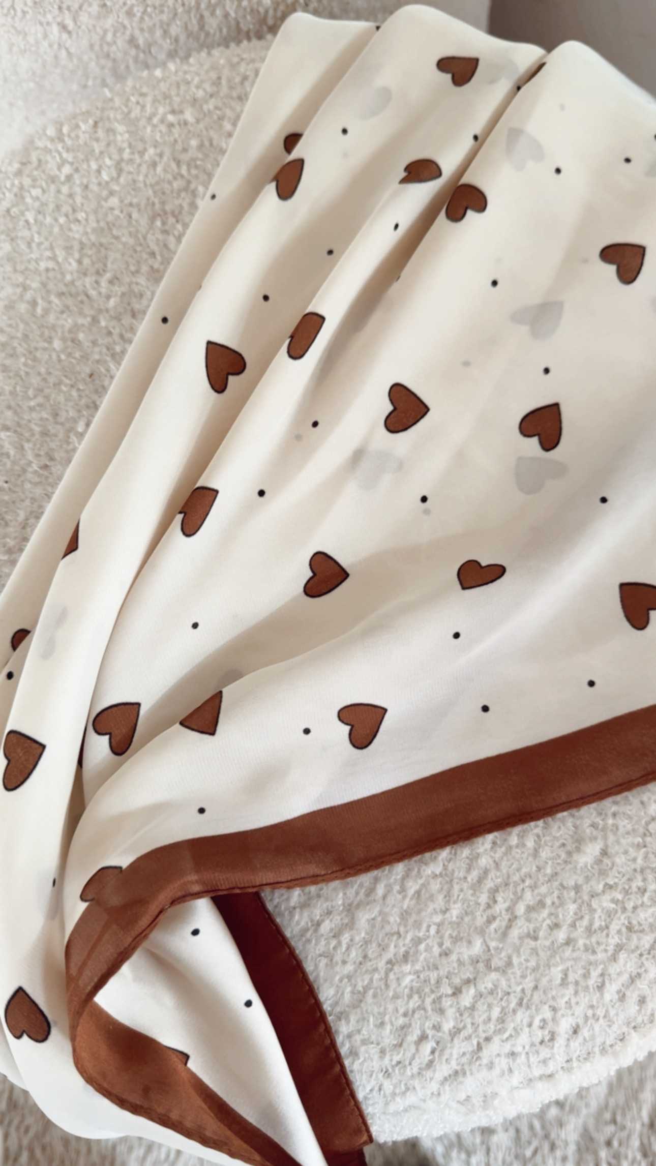 Een vleugje ecru met kleine hartjes, een speels statement om elke dag te dragen. Om je nek, in je haar of aan een tas, het fleurt je outfit op en voegt die moeiteloze chic toe waar we zo van houden.