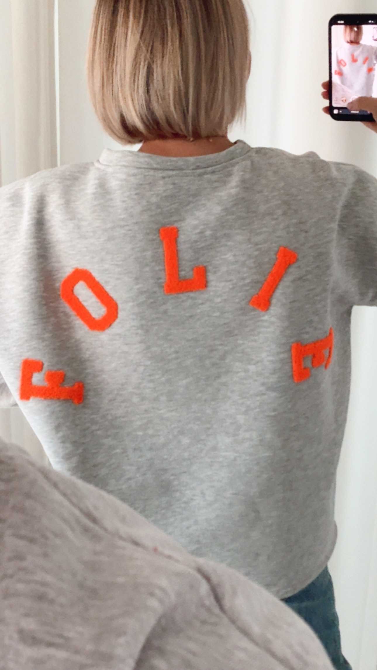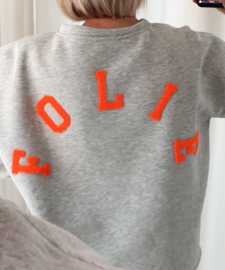 Onze exclusieve FolieSofie truien zijn echte blikvangers waar je meteen verliefd op wordt. Op de achterkant prijkt groot het woord FOLIE. De trui voelt heerlijk zacht aan en zit uiterst comfortabel – ideaal voor een dagje shoppen, een werkdag of een ontspannen moment thuis. Een onmisbare basic voor elke dag.