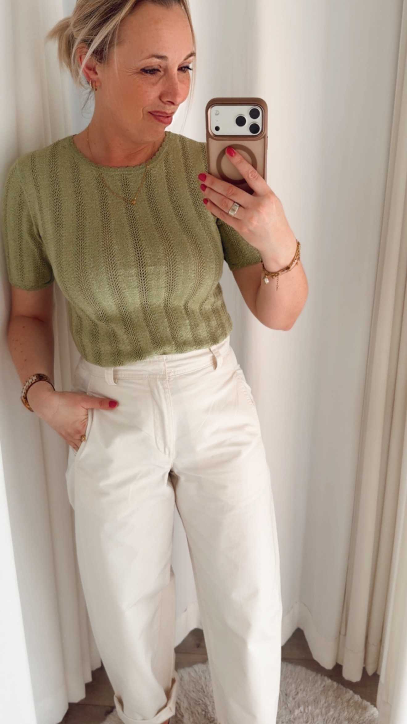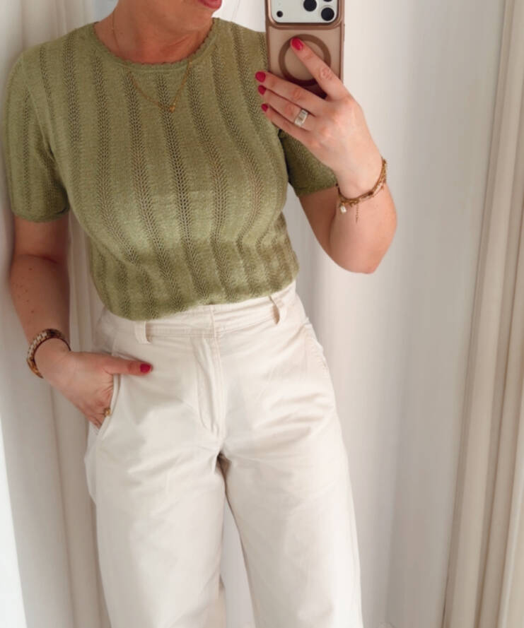 Terug naar de winkelDeze stijlvolle top in een frisse lichtgroene tint is een perfecte aanvulling op je garderobe. Dankzij de subtiele ribstructuur en aansluitende pasvorm creëert deze top een vrouwelijke en moderne look die moeiteloos te combineren is.
