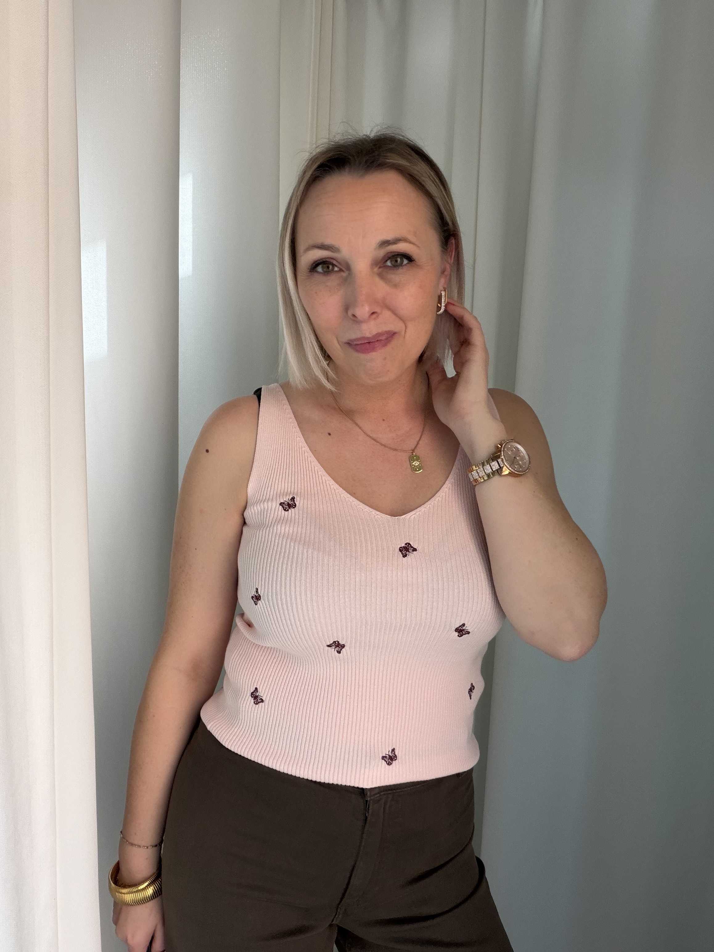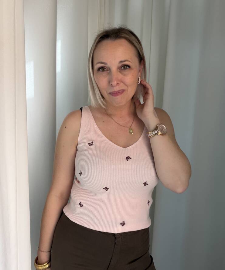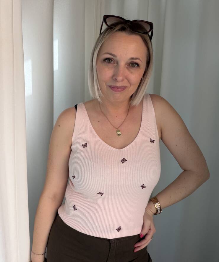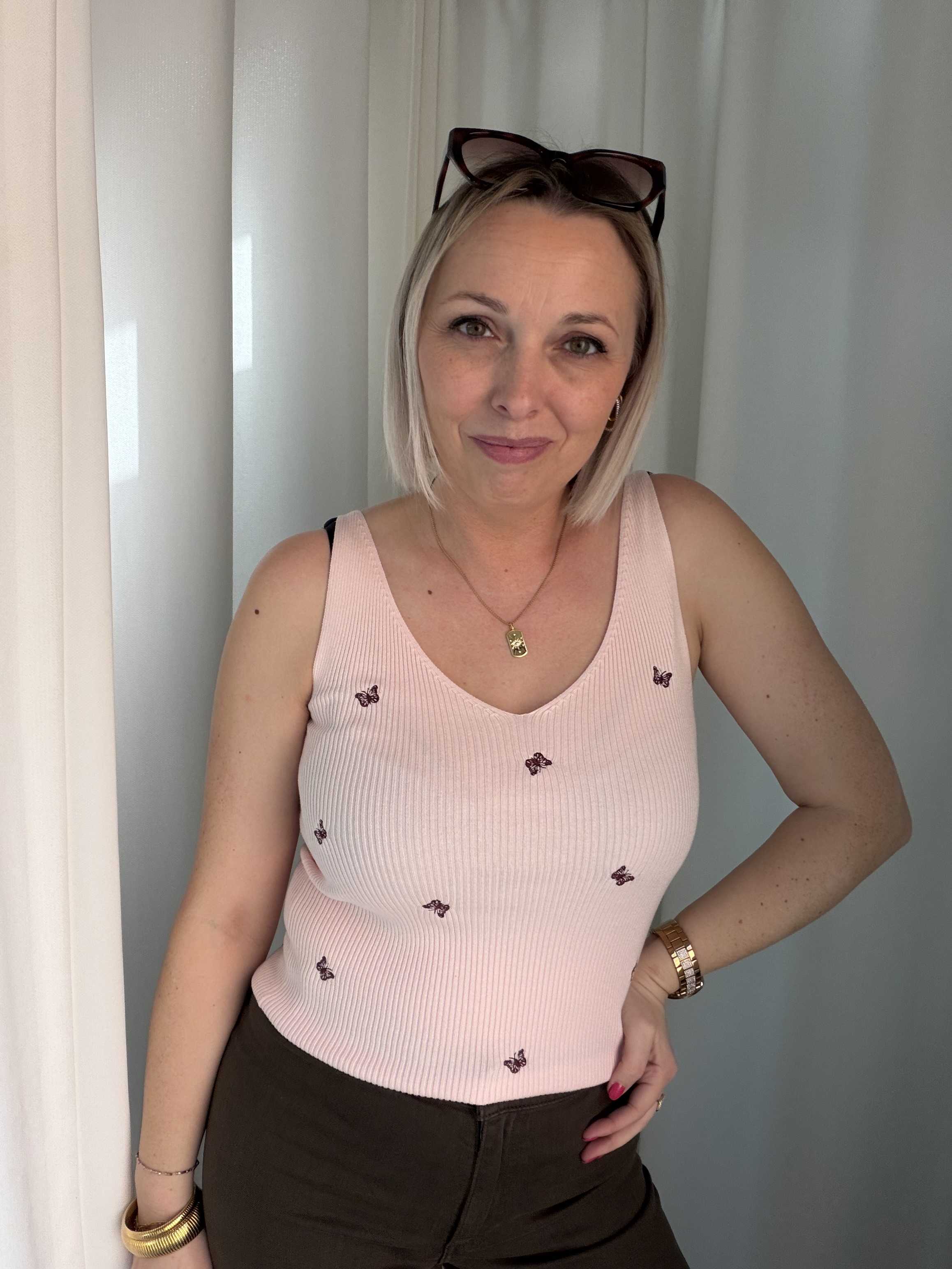 Combineer met een lichte denim of een witte broek voor een zachte, zomerse look. 🦋