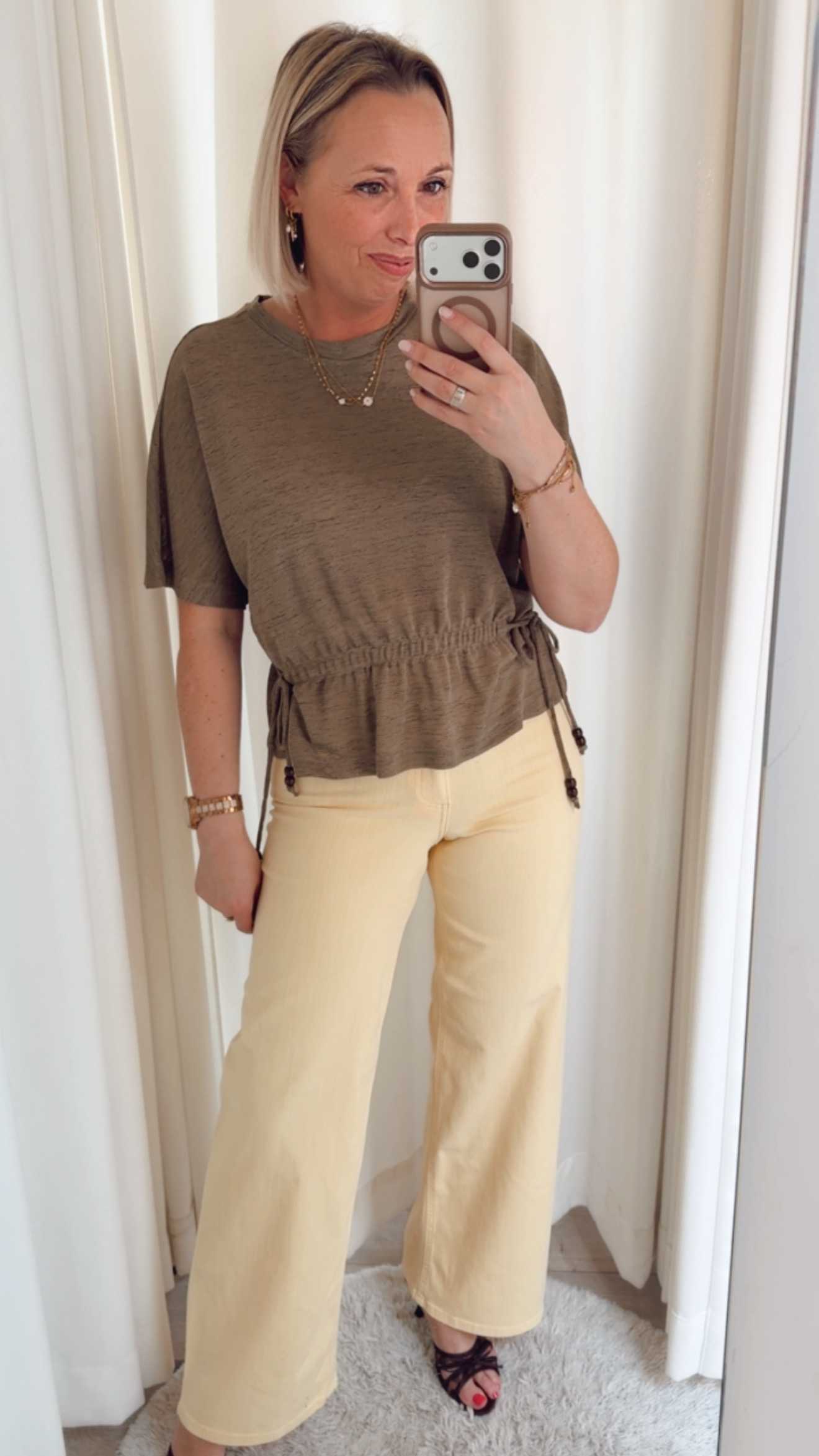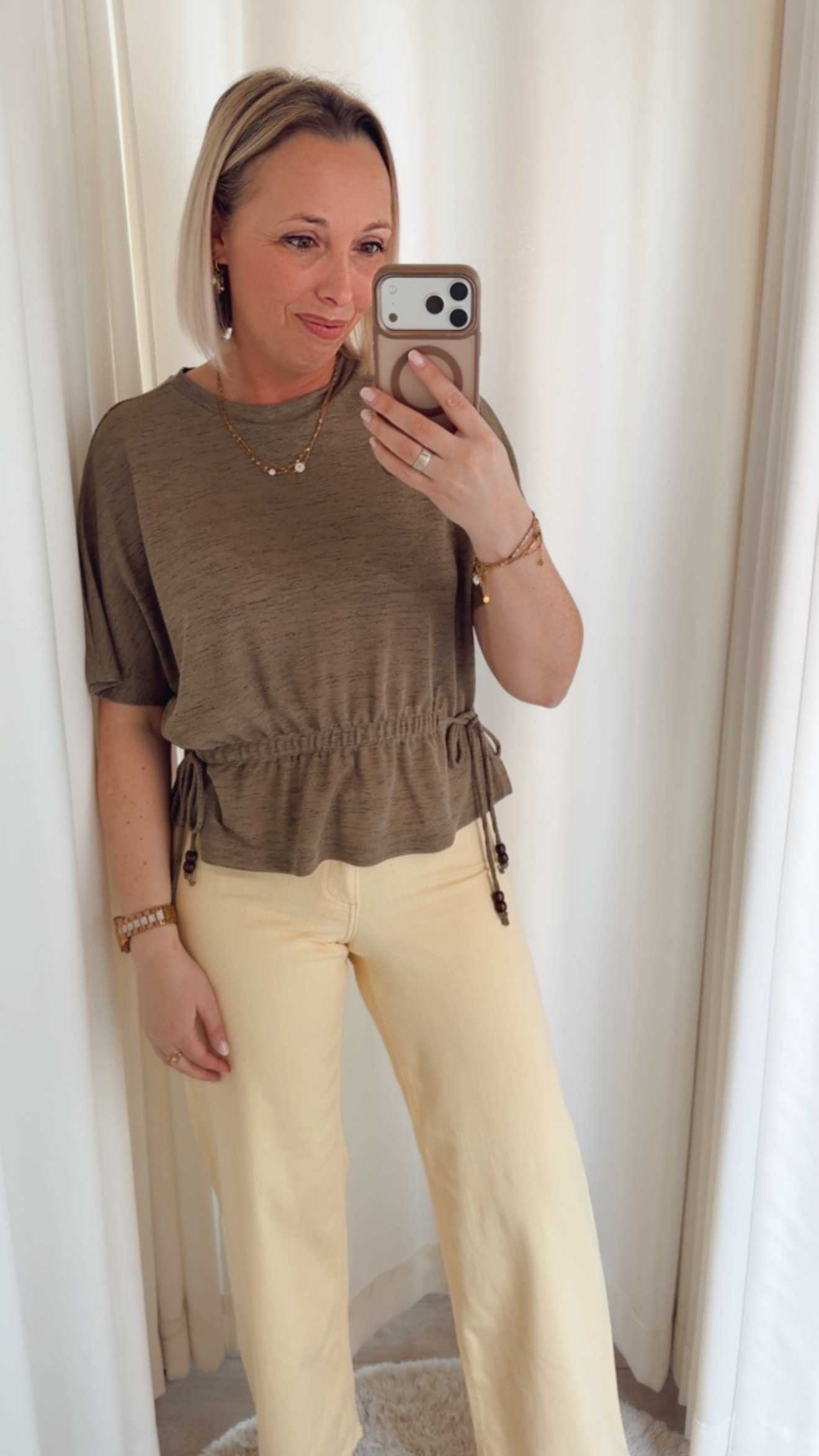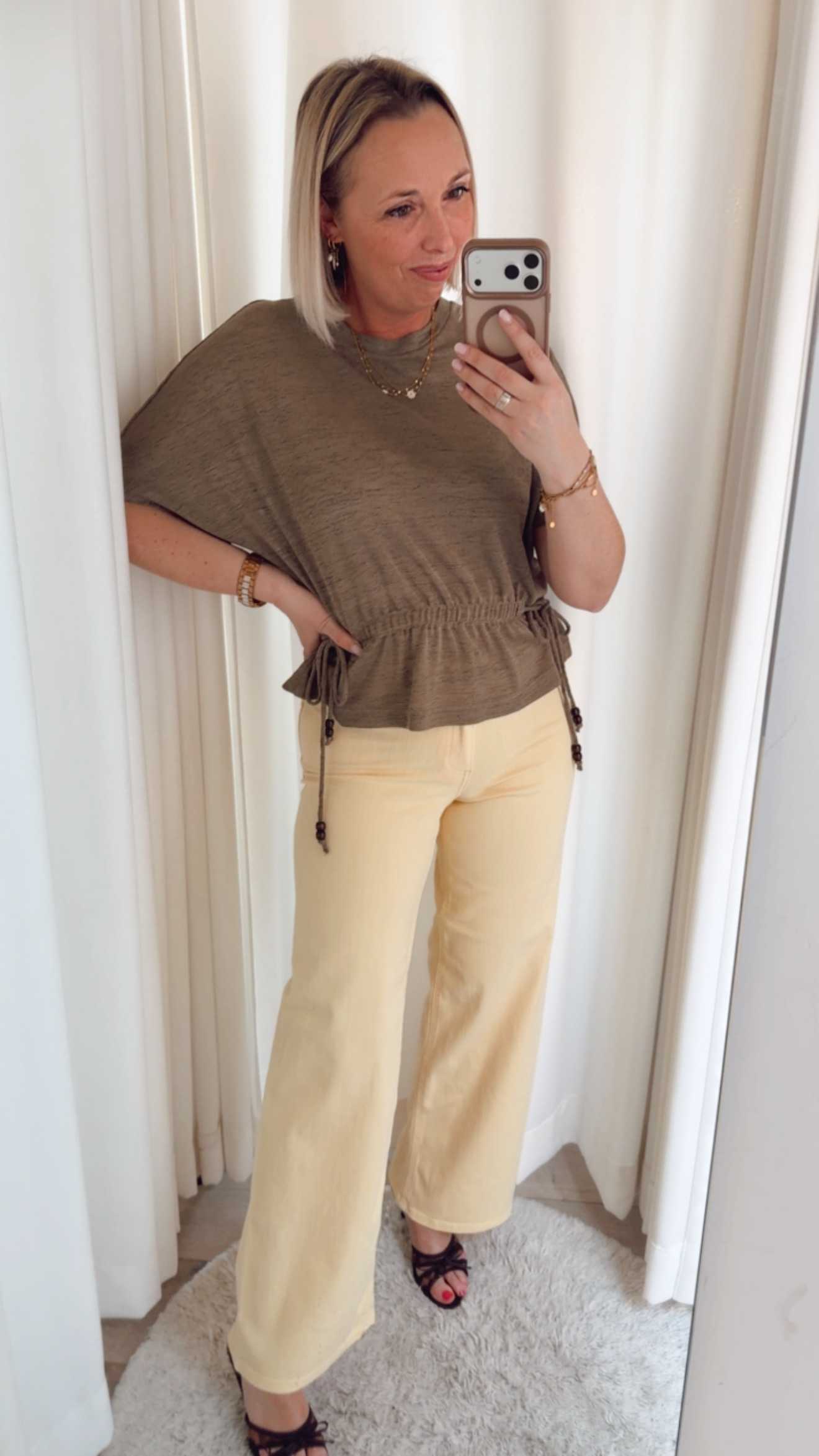 Het subtiele strikdetail in de taille geeft de top een speelse twist en maakt het mogelijk om de pasvorm naar wens te verstellen. Hierdoor creëer je eenvoudig een flatterend silhouet.