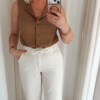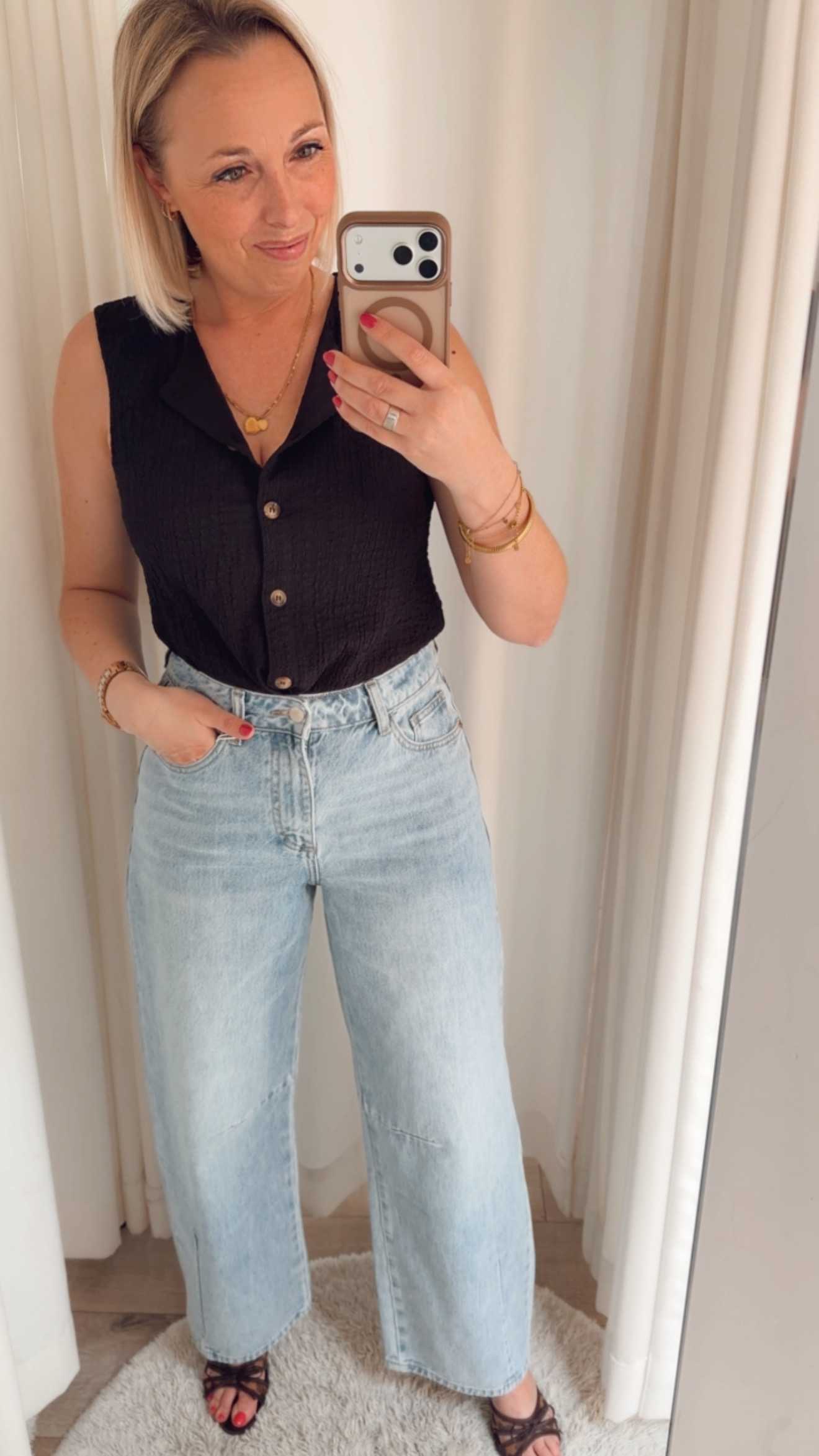 De top heeft een rechte, licht losvallende pasvorm en een ronde halslijn, wat zorgt voor een tijdloze en veelzijdige look. Dankzij het mouwloze ontwerp is dit item ideaal voor warmere dagen of om te layeren onder een blazer of vest.